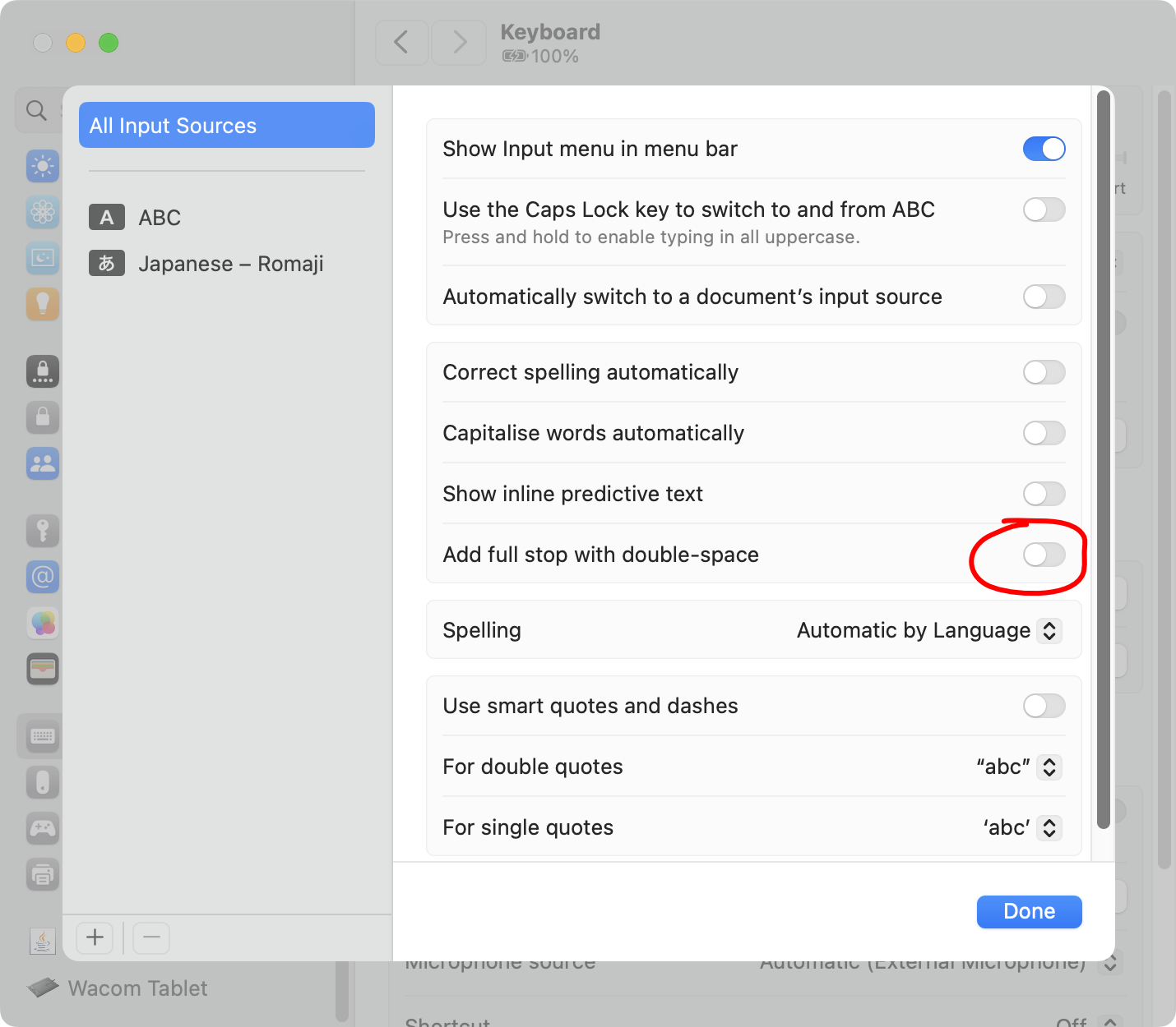 So I had previously turned off all spell checking, autocorrect, etc., or so I thought... I have caught onto this trend of periods getting typed without period keystrokes, and it's been driving me absolutely bonkers. I haven't been able to find any info on this by Googling. I just wanted to share this in case anybody else was getting super frustrated over this sort of feature.