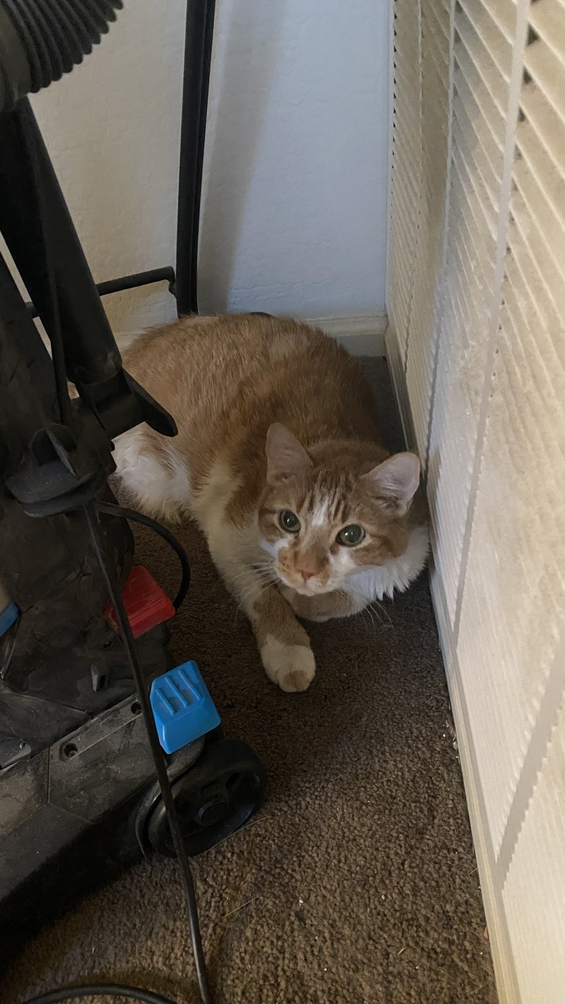 I just spent 10 minutes getting cat puke out of the carpet. A regular occurrence because our cat likes to do that I guess. We are down to just the one cat. We got him in around 2010 I think. Some family was moving and they were going door to door trying to get someone to take their cat because they weren't taking him with them. They'd already tried to dump him off in a park and he found his way home.