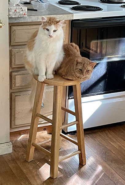 Well... big progress here. Almost exactly two years after she arrived, this feral cat began letting me pat her. It just built slowly from that, and now she's an affectionate, sweet cat that just loves to be petted. Still different from a cat that was domesticated as a kitten, but her progress is remarkable. The other cat has been jealous to have this new "competition", but generally they are getting along well.
