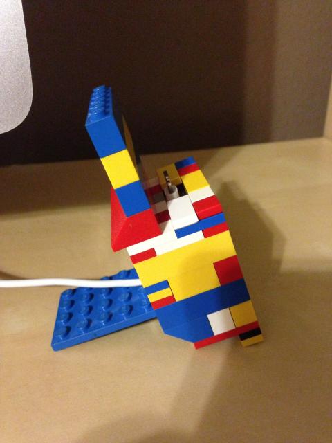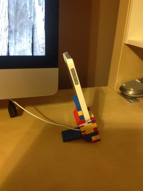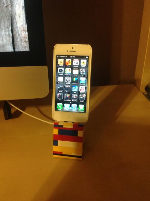 I found a link online where you can purchase the pieces to make a iPhone 5 dock out of Legos, and I own way too many Legos for a man of my age, so I went through my extra pieces and built my own using these instructions as a guide. I modified it a little because I didn't have the exact pieces. I also thought their's was a little too tall, and I moved the back piece back a little so that you can use a case with it. It works very well and the phone is held in place rather sturdily, despite how it looks.