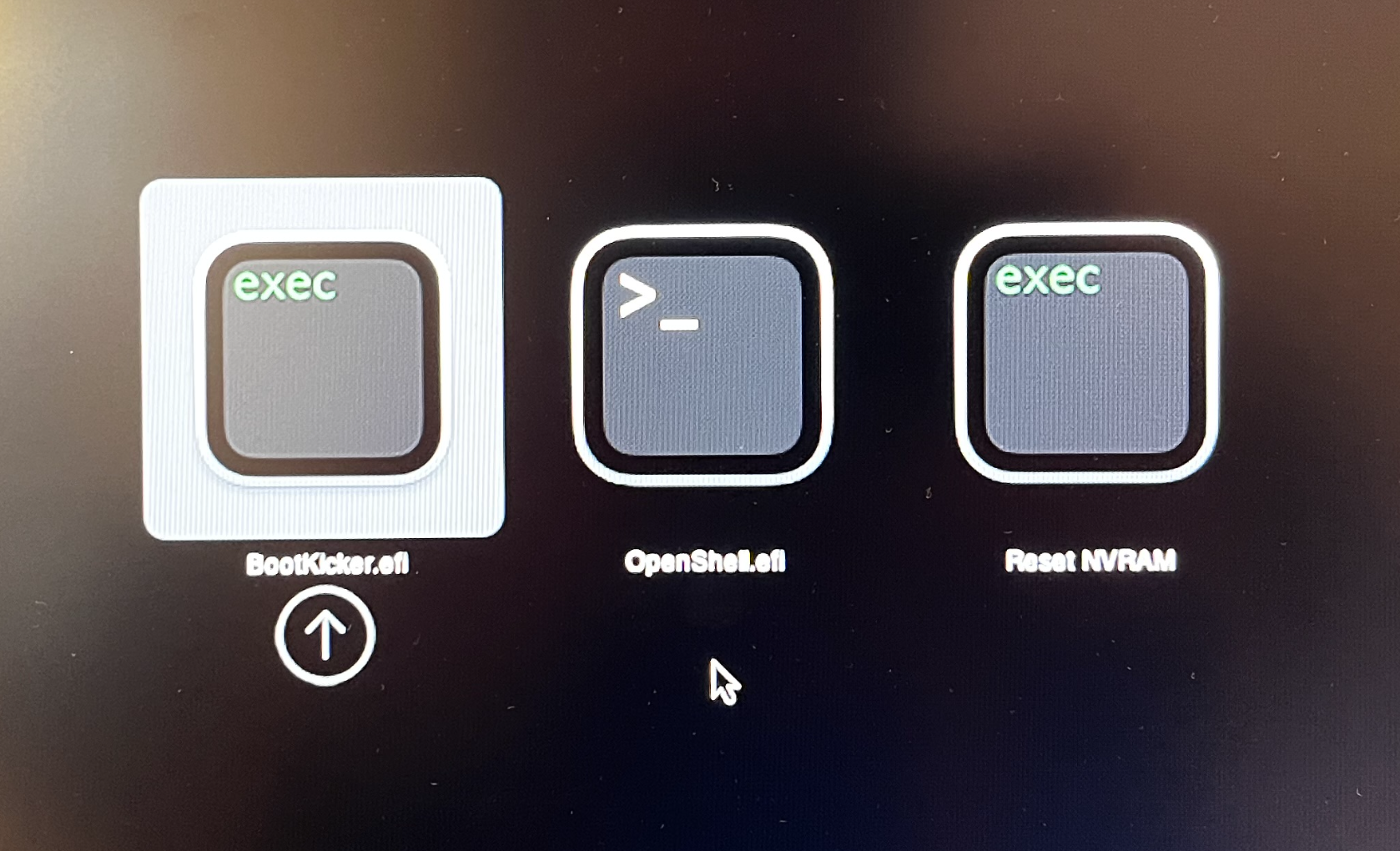 - BootKicker.efi - selecting this gives me black screen