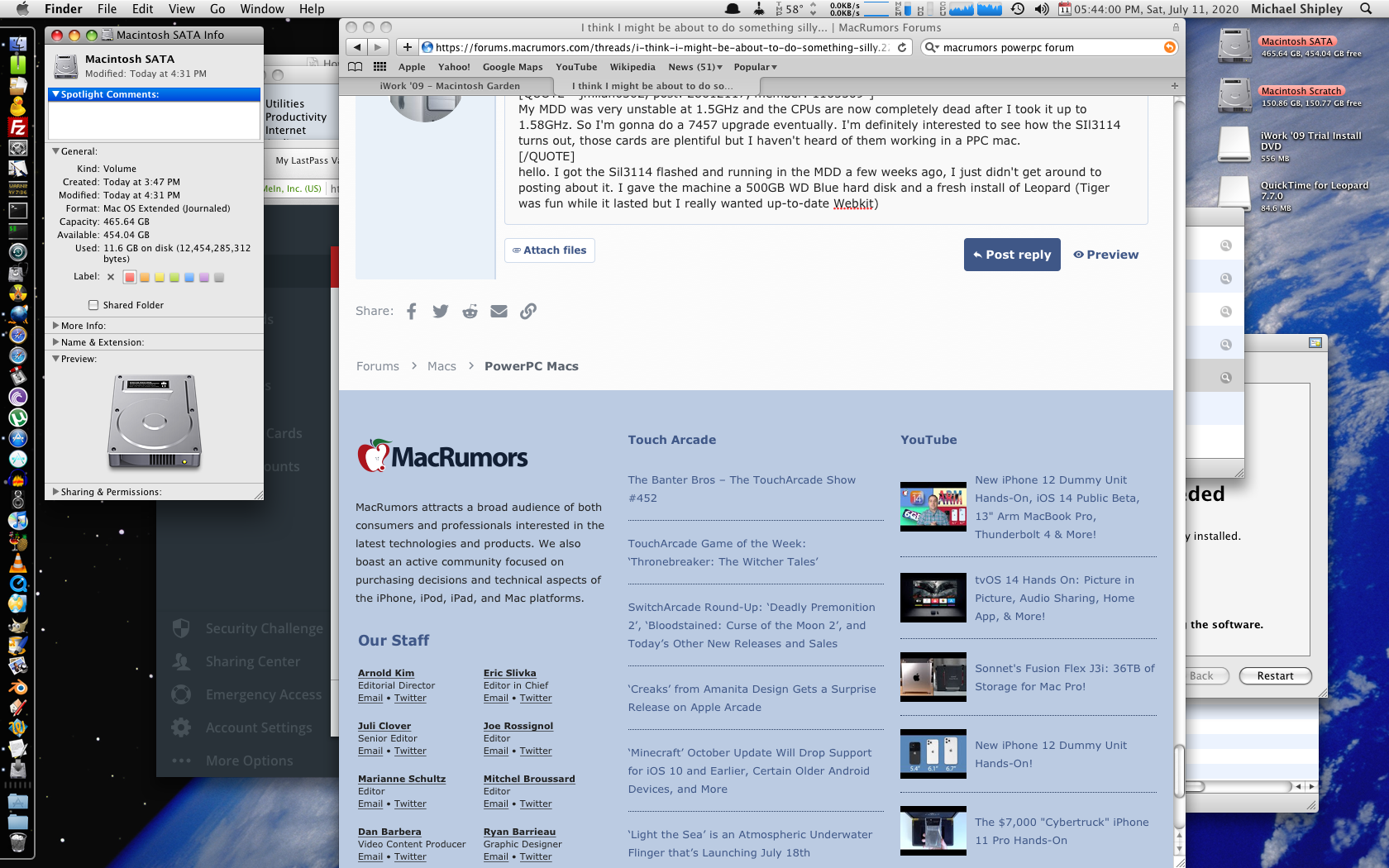 How did you go about flashing it? I wonder if it's possible to get a Sil3124 working in an MDD but I'm not sure if it could take advantage of the 64bit PCI slot as it's a PCI-X card which came later and was in some G5s that used the same connector as 64bit PCI. Of course that's provided you can even find a Sil3124 card they seem to be rather rare.hello. I got the Sil3114 flashed and running in the MDD a few weeks ago, I just didn't get around to posting about it. I gave the machine a 500GB WD Blue hard disk and a fresh install of Leopard (Tiger was fun while it lasted but I really wanted up-to-date Webkit)