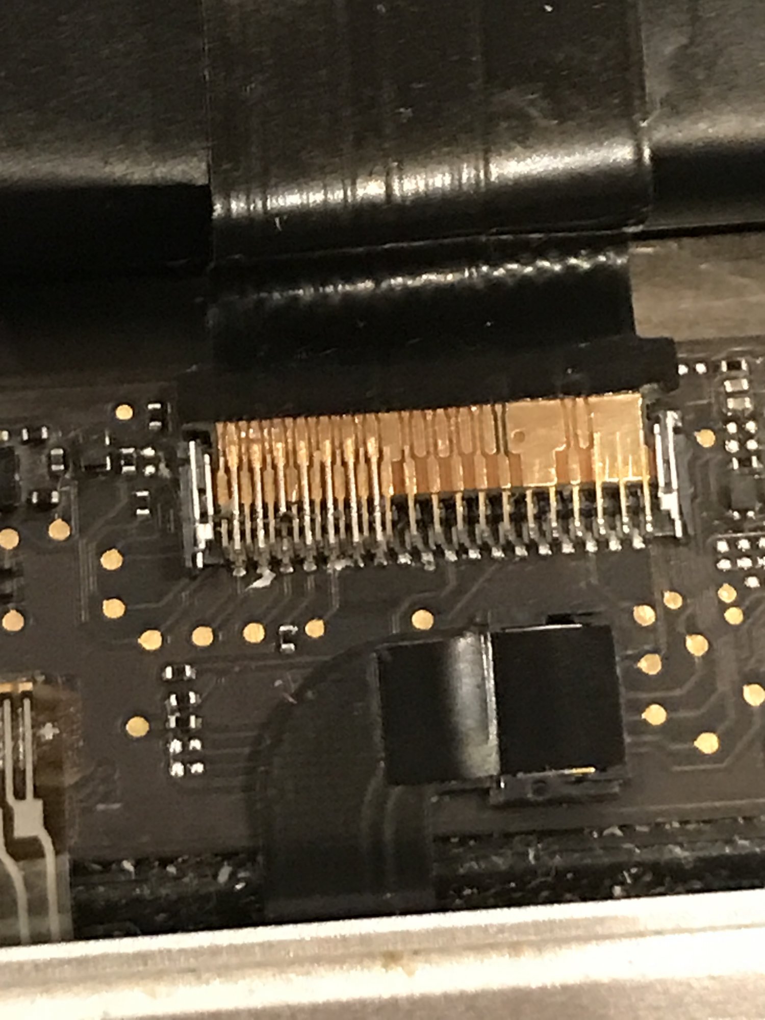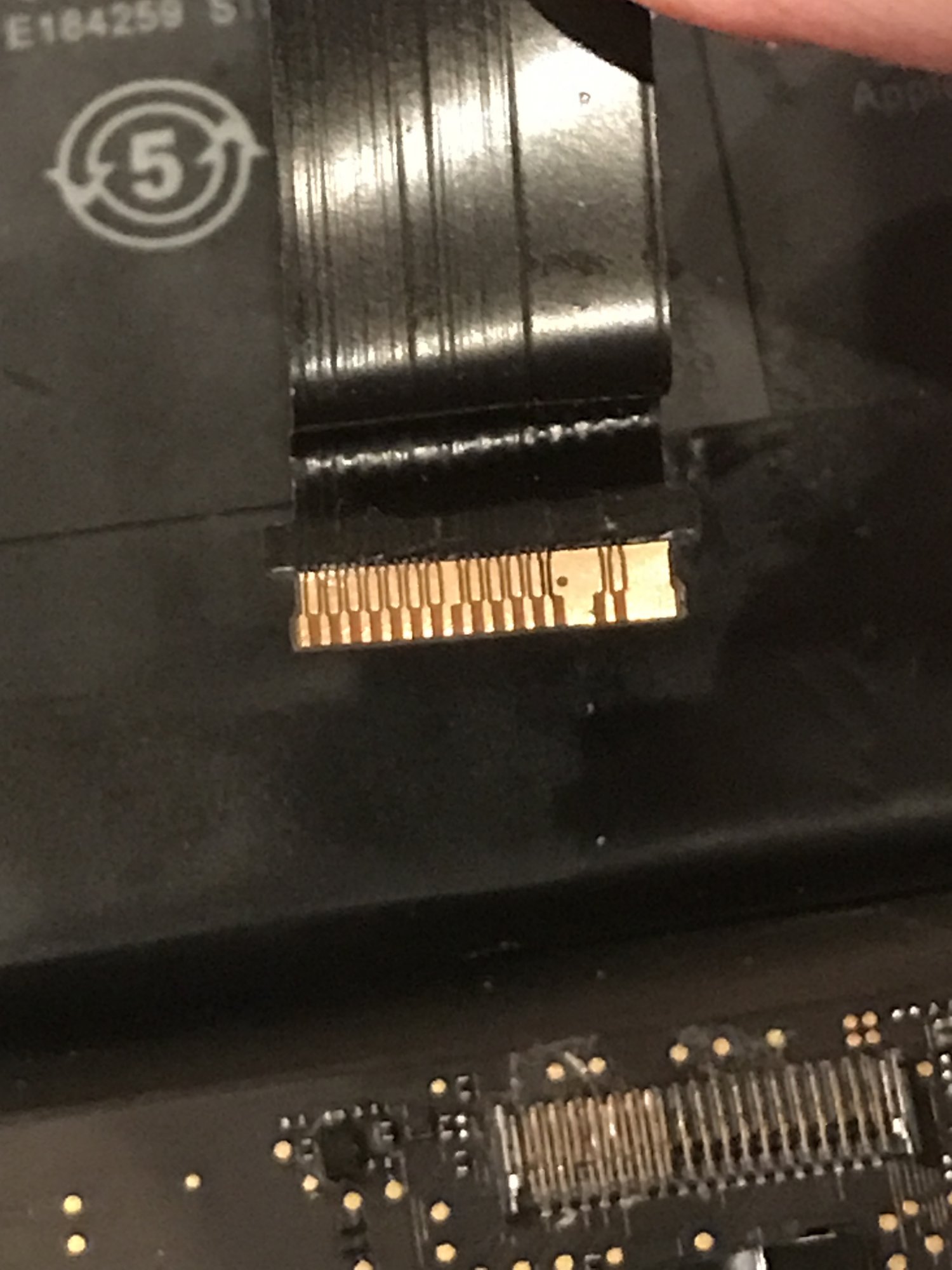 I decided to take it upon myself to replace a dead battery. Followed all the instructions, and was well on my way. Until - disaster. In replacing the trackpad cable (like the last thing I had to do), it looks like I have ruined the ZIF socket it plugs into. Some pins have broken.