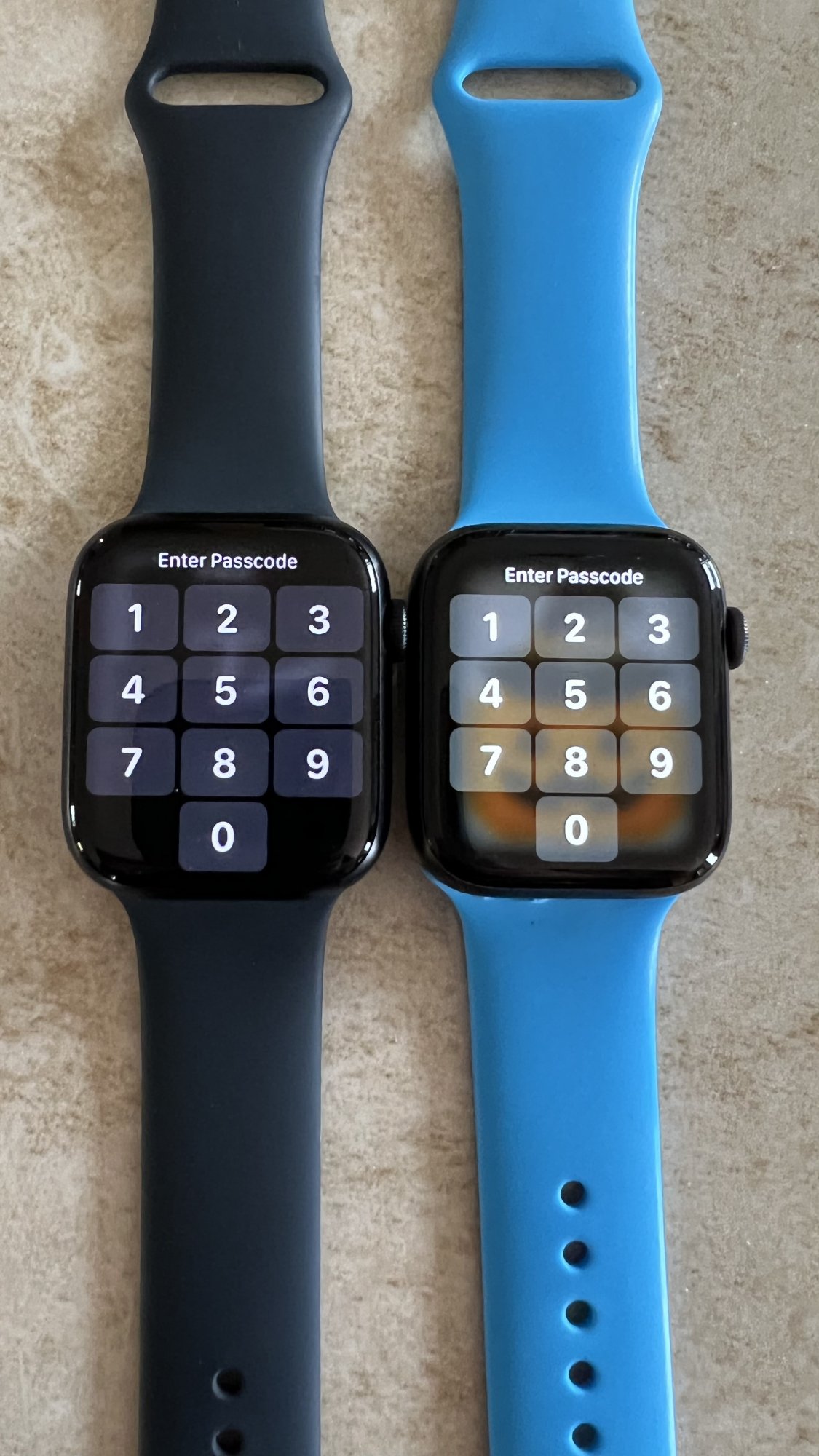 So in looking at these pictures it looks like you have a charger or something behind the new watches. I think that’s making them sit way forward on your wrist and making them look much bigger, especially compared to your old watch. The new 45mm watch is 1mm taller, but exactly the same width as the old 44mm watches. The size difference shouldn’t be that noticeable.