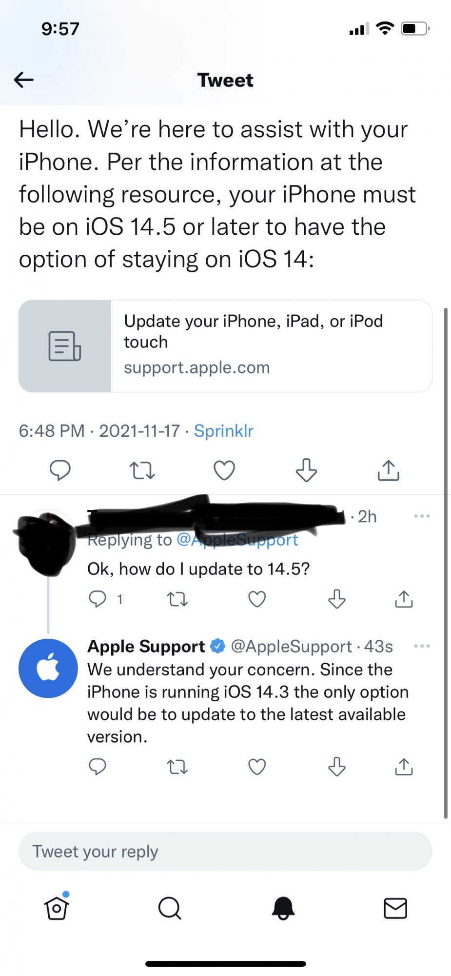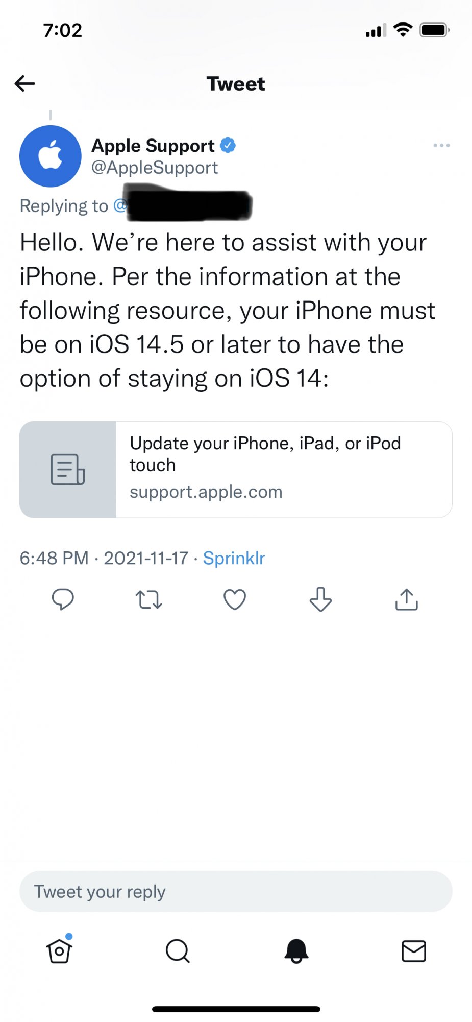 That we didn’t have to update to iOS 15 and could stay on iOS 14 with security updates. I purchased a new 12 pro and asked for the oldest stock so I could go back to iOS 14 (I was on 15.1 on my iPhone 11 and battery life began to become horrible and annoying) however I do not have to option to stay on iOS 14 with updates, I only have the option to upgrade to iOS 15.1.1.