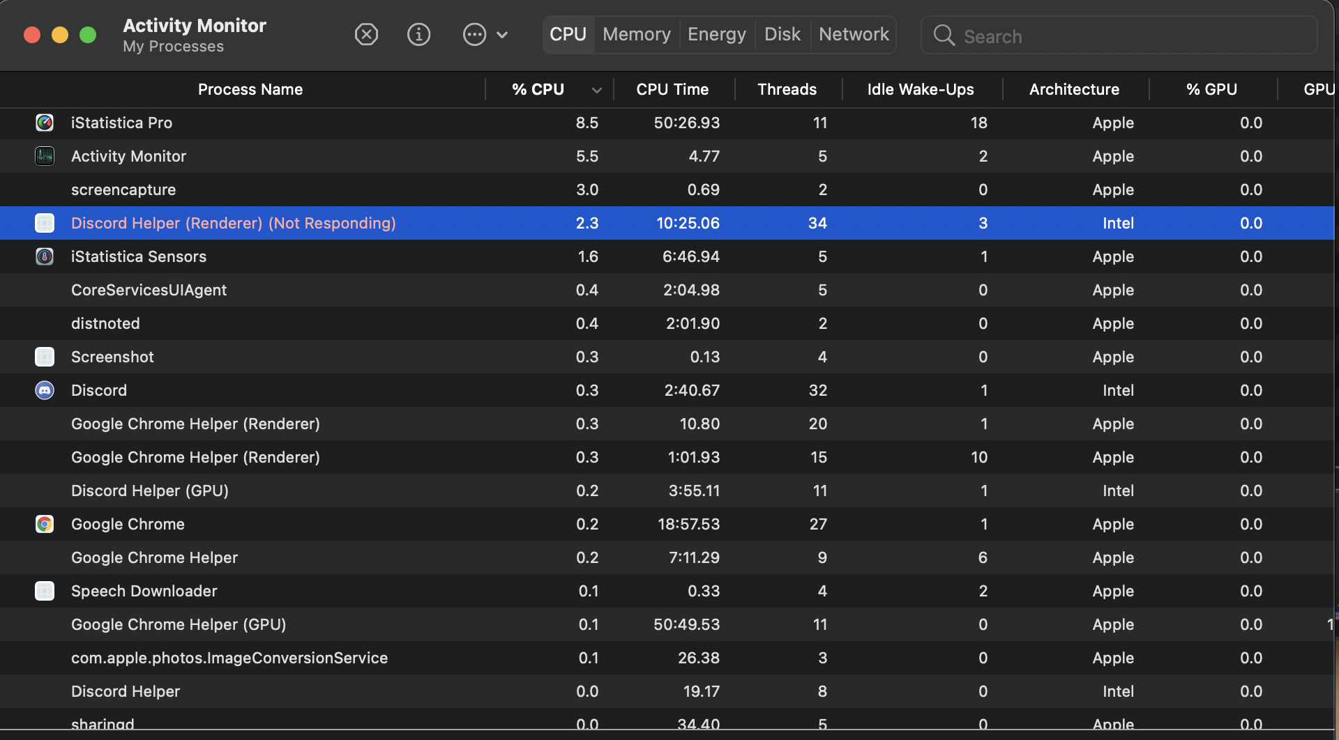 (Ignore the highlighted process, was having fun trying to kill it - on M1 Electron based apps like Discord are the new king resource hog, as Rosetta seemingly cannot translate it efficiently).