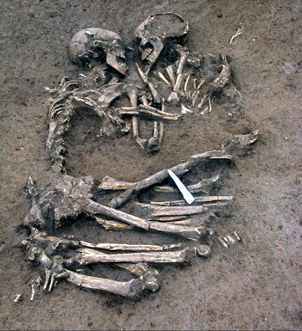 The skeletons' bones were discovered interlaced