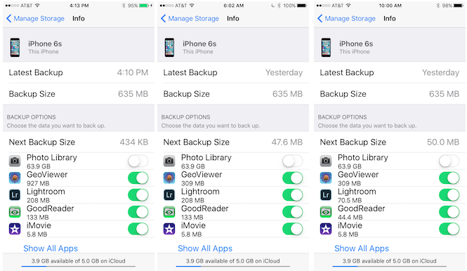 The following screen shots were taken on my iPhone 6s. The first one was taken a few minutes after a successful iCloud backup yesterday afternoon. The middle one was taken this AM. And the last one was taken at 10AM today after I shut down the 6s and restarted it.