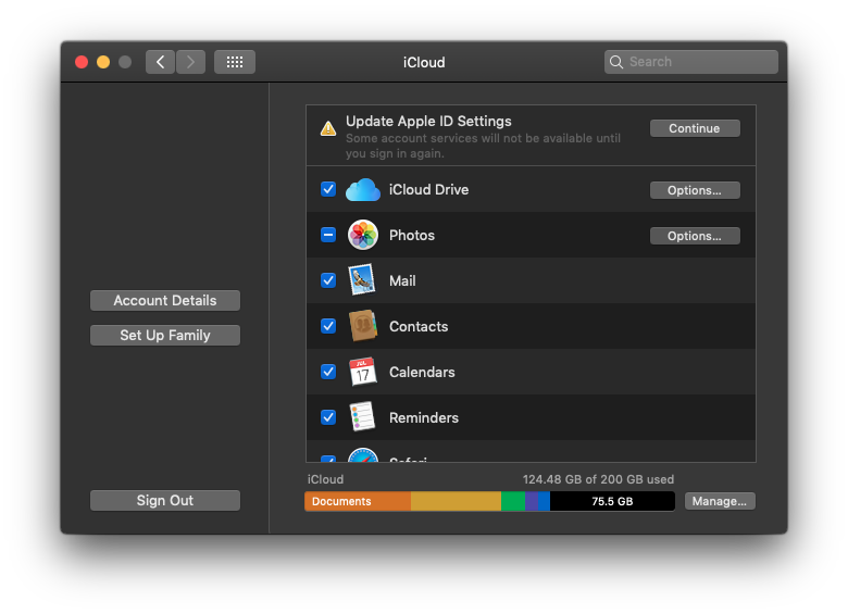 I also get a message about having to update iCloud settings > when I click that, it prompts me to log in again but not to change any settings.