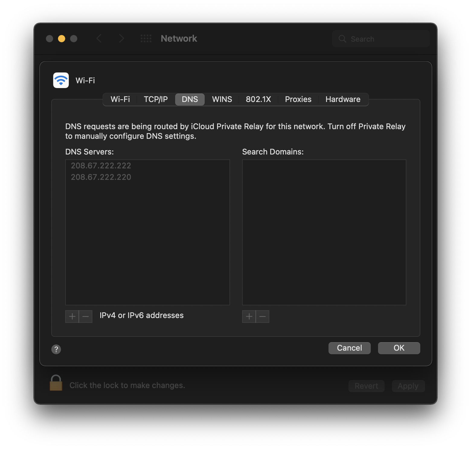 I have been using OpenDNS servers but now apparently iCloud Private Relay has taken over.