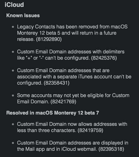 Thats me not gonna work for me - as some family members have domain.com addresses for icloud / itunes accounts.From the macOS 12 Beta 7 release notes (not sure why it's in there but guess they have no other place):