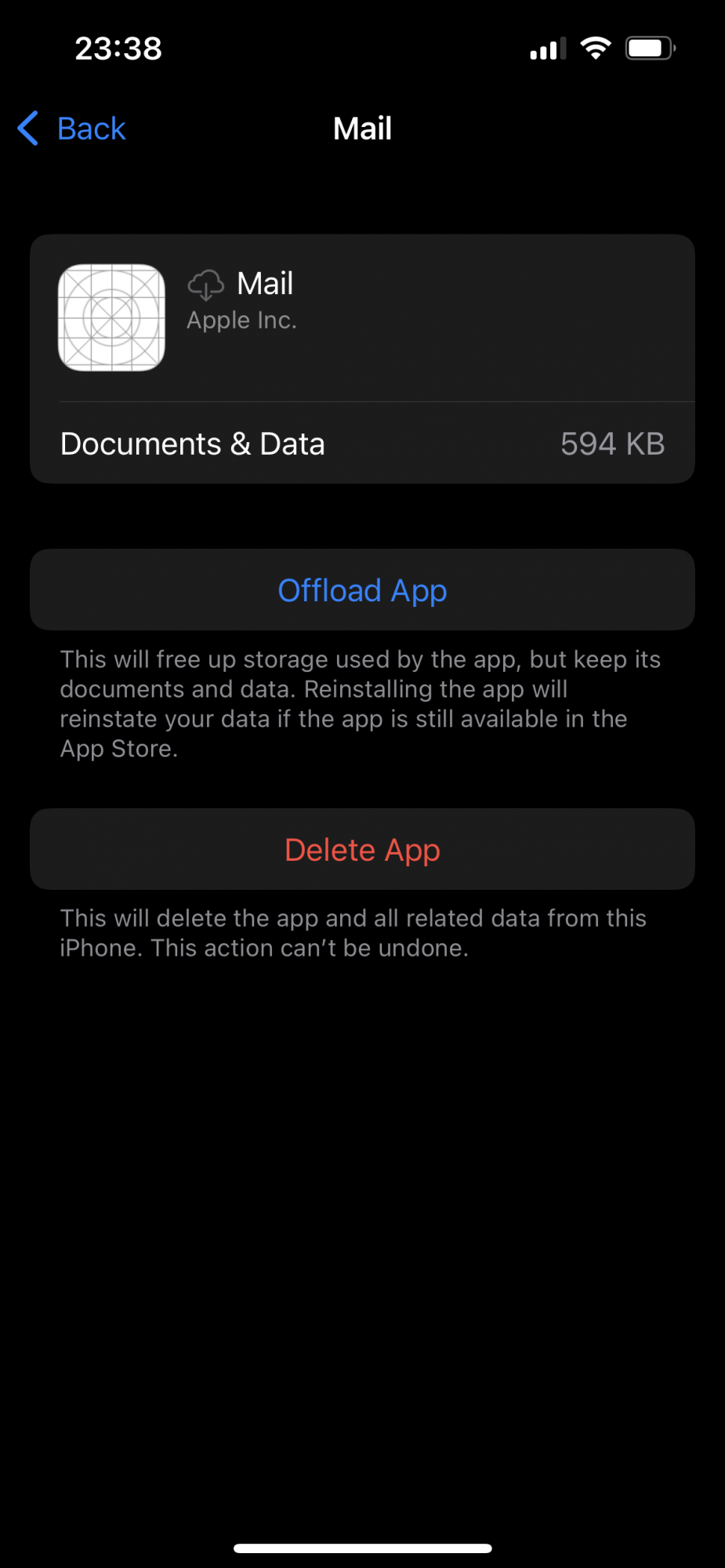 It appears that there is a bug in the ability to completely remove the Mail and Contacts apps that the OP is experiencing.You are correct. According to this Apple documen that ability came with ios 14. I think previously the app was only hidden, not actually deleted. But now these shown below can be deleted.