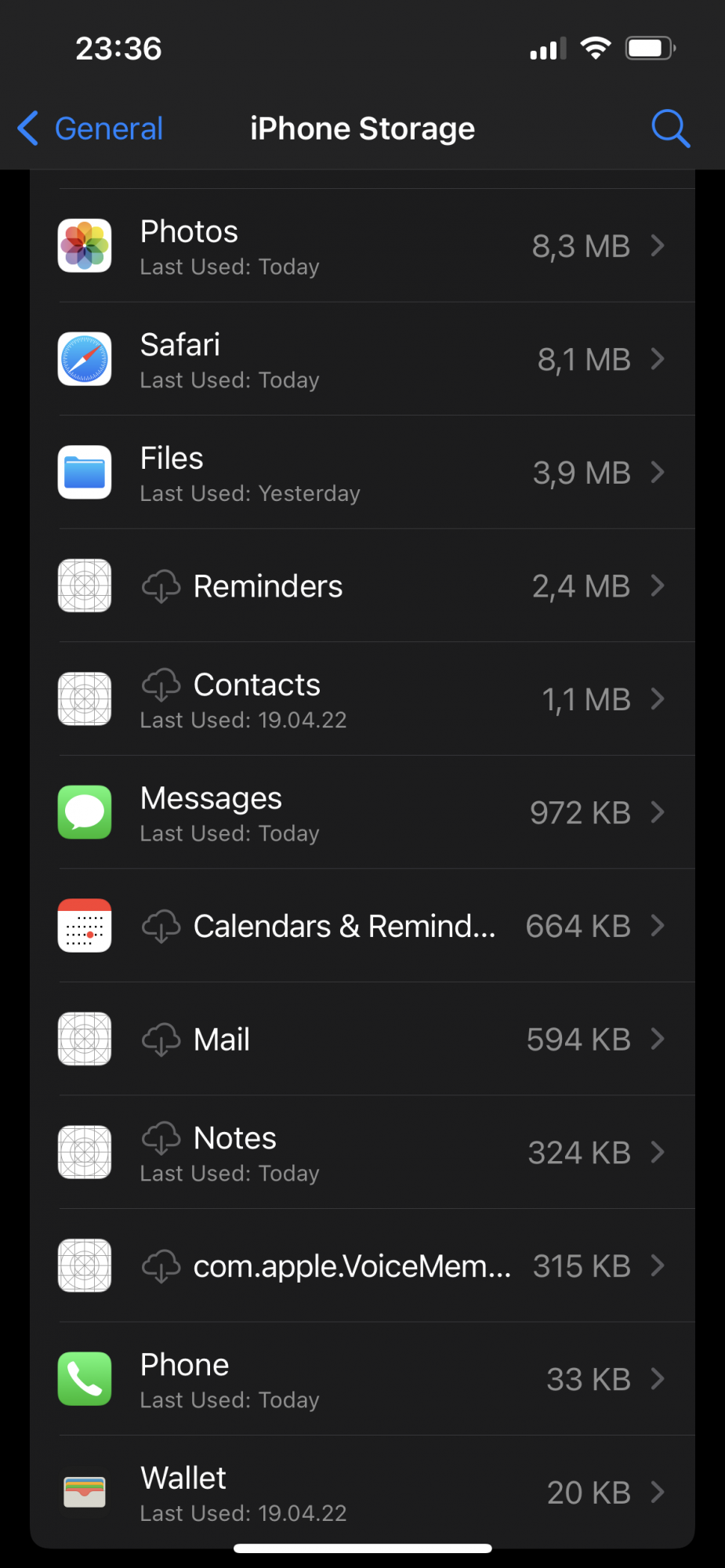 All other apps are deleted, and the only ones that are showing residual data is VoiceMemos and Reminders... (Reminders may have data linked to the calandar app)