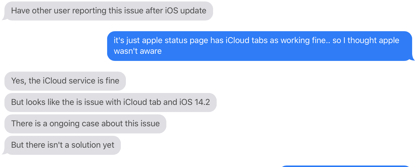 how funny, Apple is claiming "no problems with Safari & tabs"..... look at this fu.... never-ending forum, Apple!Been seeing a number of issues crop up for iCloud related functions. At this time Apple is claiming all is well.
