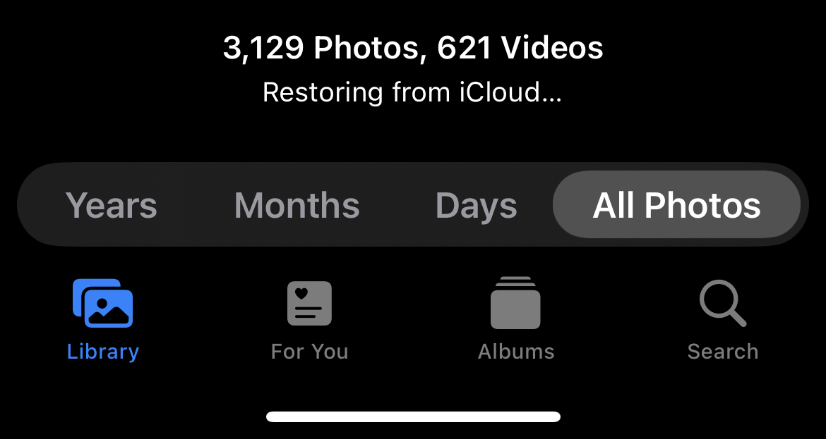 And for some reason, in the photos app is not telling me that is synced anymore but is restoring from iCloud. I really don’t understand what is it restoring since I just purchased this 2 days ago