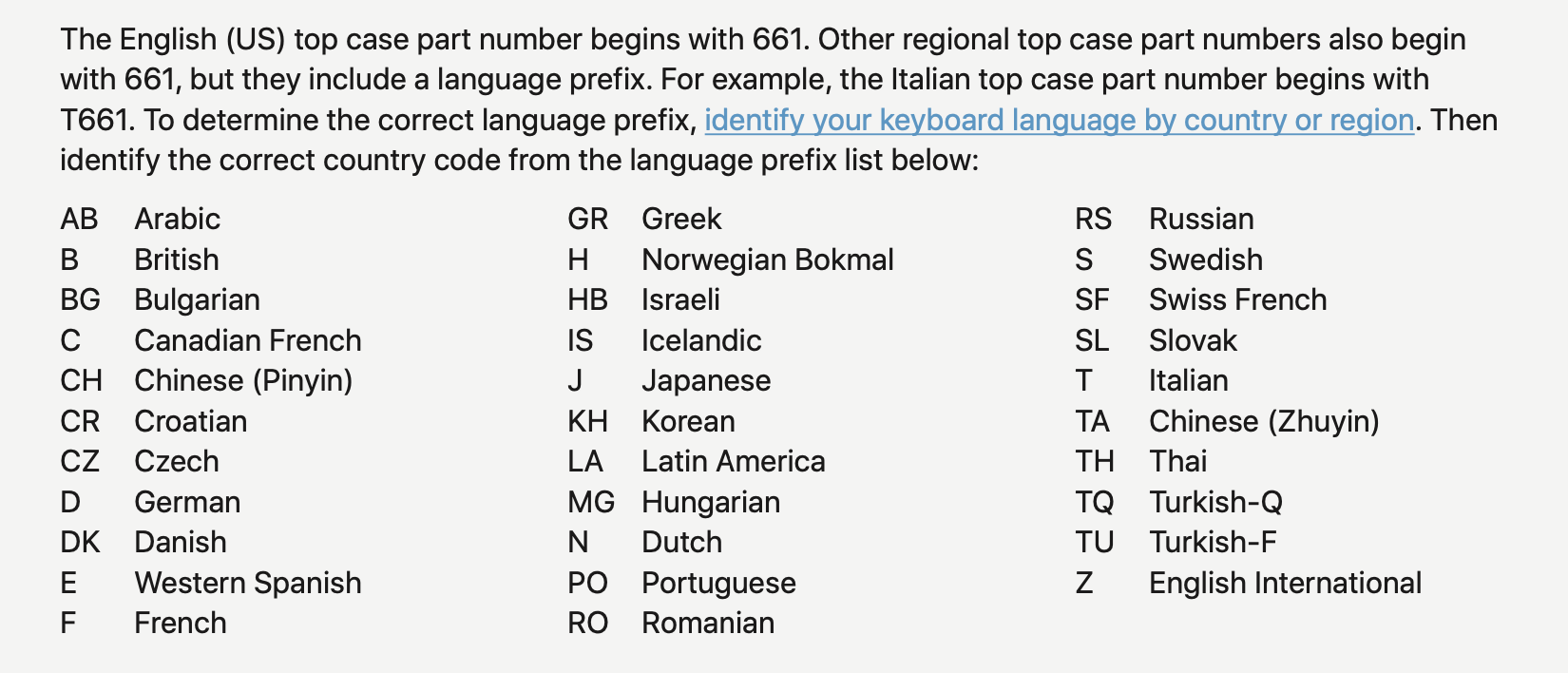How to identify the keyboard layout? And how does this machine sit in the supply chain? I can see it's a 'renewed' machine from the N in the serial number, but where does the Z stands for in the part number?