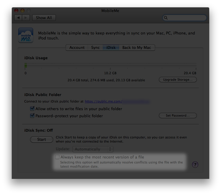 I am using iDisk with iDisk Sync On set to update Automatically.