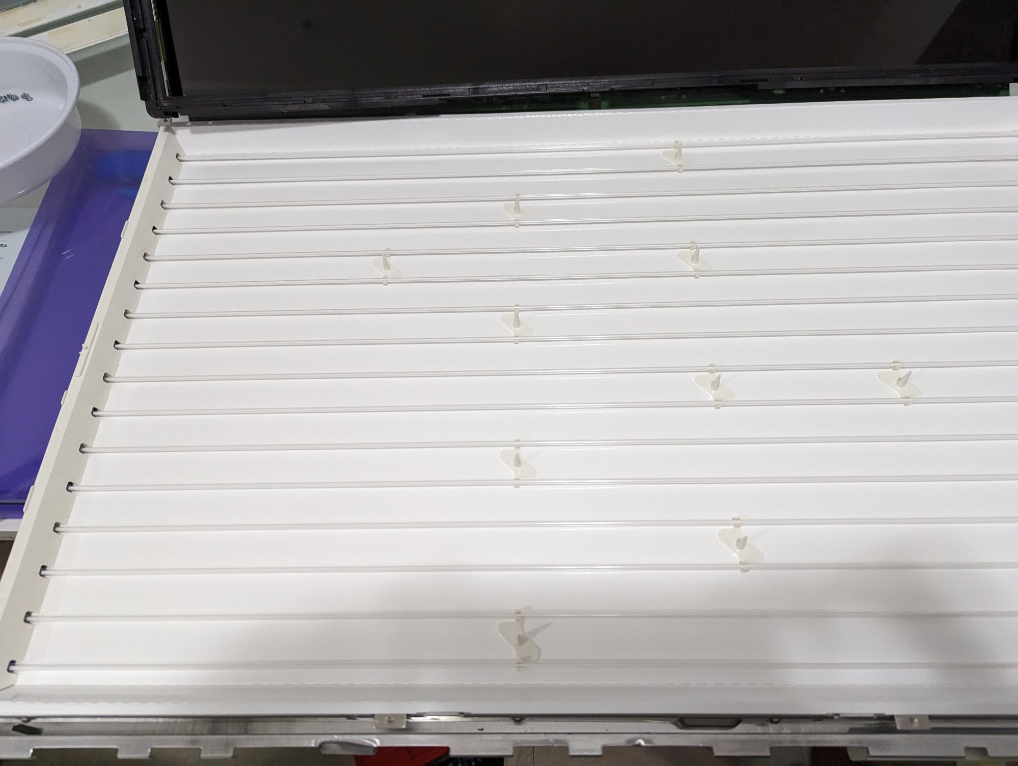 But also if your display is yellowing replacing the bulbs may not fix the issue as the yellowing may be a result of one of the three diffuser panels (in my case it was totally yellow). I am not sure what you actually call the panels so I am calling them diffuser panels. There are three sheets.