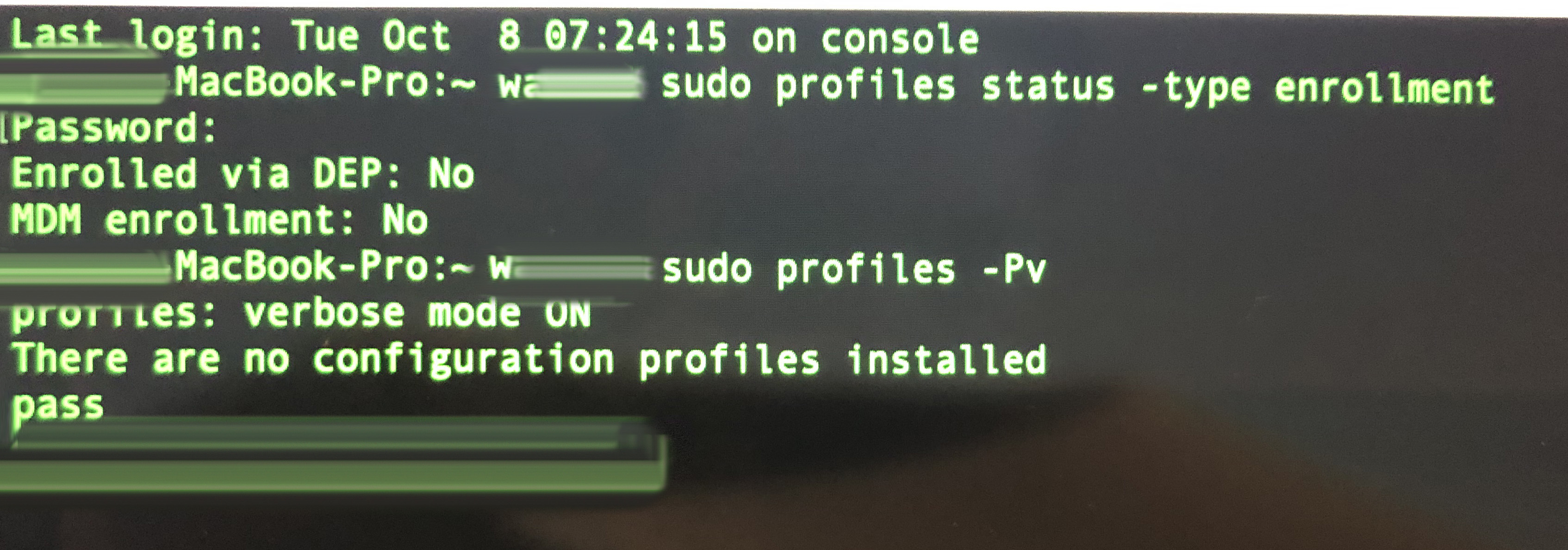 When I run the terminal commands it doesn't appear to have the DEP enforced and I only see this when I first installed MacOS. I don't want my MacBook wiped, locked, or otherwise affected once I start using it.