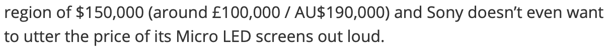 What are you even quoting from, and why is Sony the company being discussed and not Samsung which is what I showed was bringoing microLED TVs to market in consumer sizes in 2021?Consumer-oriented, not millionaire-oriented.