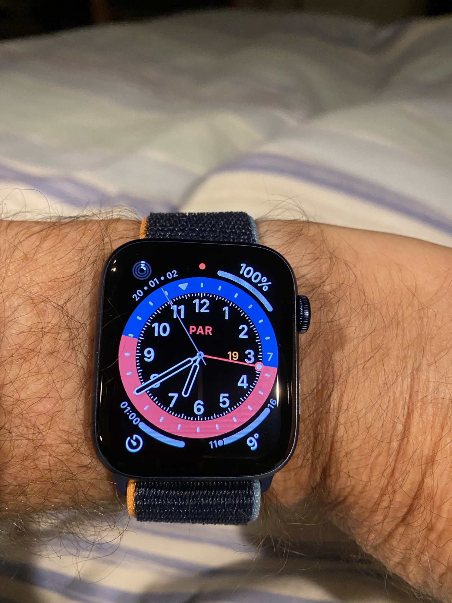 After seeing pictures of it (taken by "influencers"), I was disappointed by how blue and cheap it looked. Well, I just unboxed my blue watch with the dark navy sport band, and it looks absolutely gorgeous. The color is very subtle and almost looks black indoors. Obviously, outdoors in the bright sun, you will see more blue. It's definitely NOT a cheap looking blue. Those "influencers" simply took crappy shots of their watches.