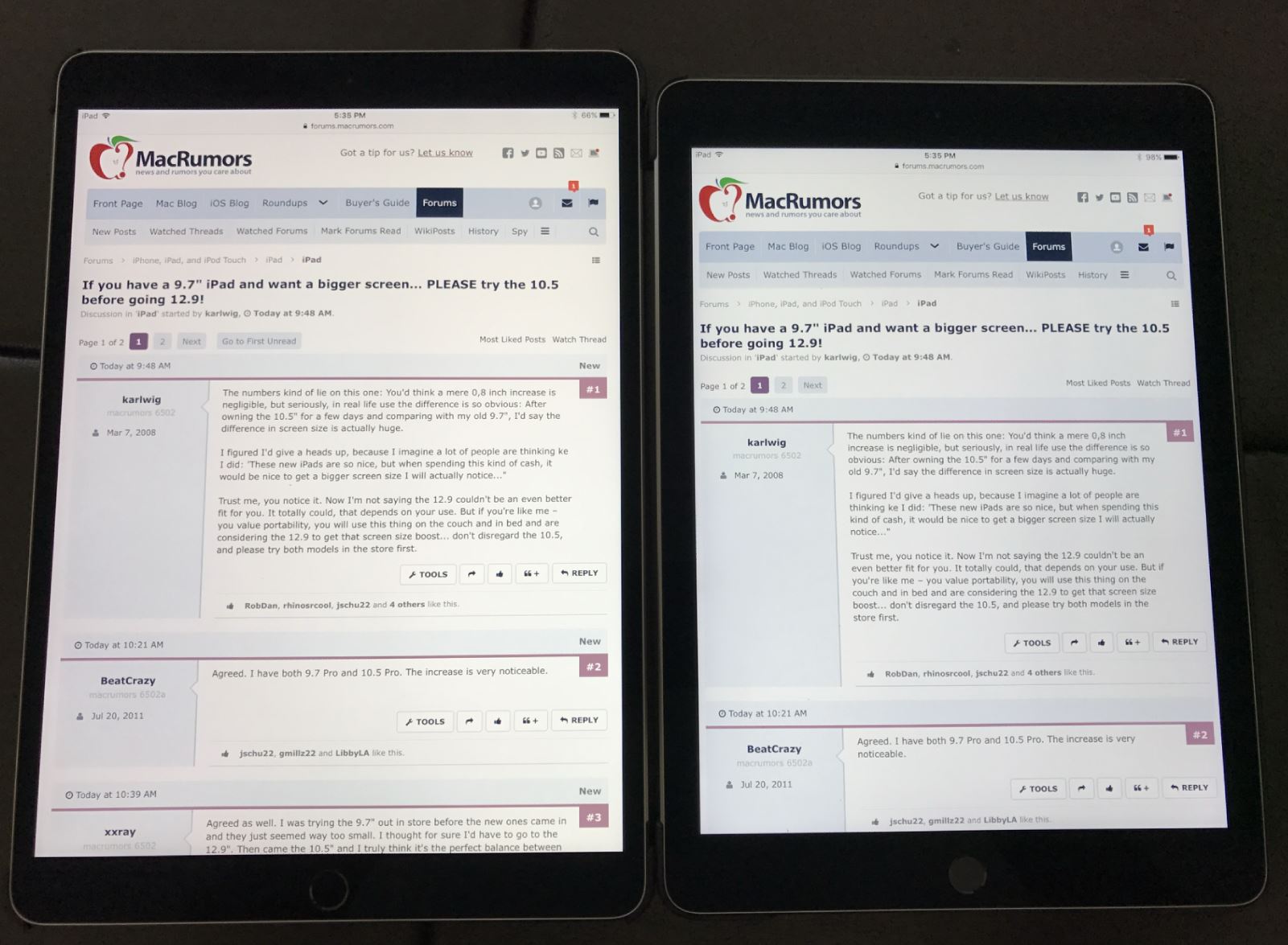 Size really is subjective. I specifically bout the 12.9, with more of an eye on "close to laptop replacement", and with iOS11 firmly in mind towards that end. Granted, most of what I do is more basic productivity and content consumption, but I have the possibility for some expanded performance if needed without hauling my MbP around on business [especially if I need to take my Windows laptop for gaming, etc]