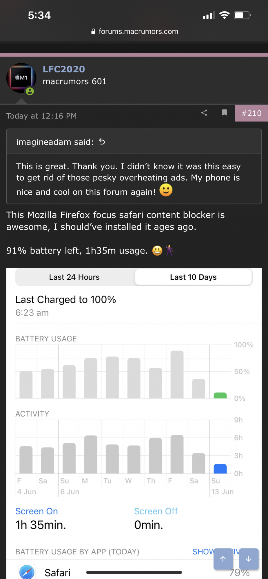 Taptalk reviews aren’t that great, rather stick with a content blocker and use safari, working a treat, no battery drain or heat issues anymore. 👌👌👌Tapatalk user here, and the app has been intermittently buggy as well. Random freezes when browsing Macrumours, delayed notifications and I can’t really say if battery life is any better or worse over the browser.