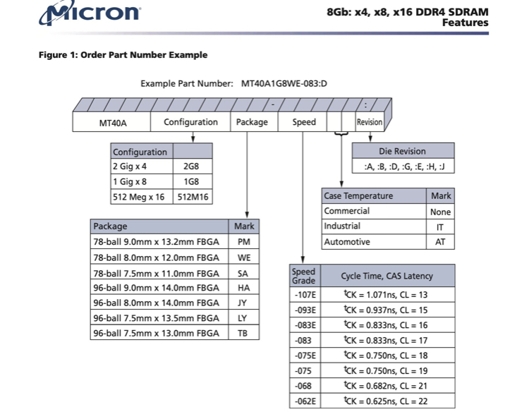 The -062E speed is the fastest part in that list, not the slowest. The -062E parts Apple is using could be run at any of the slower listed clock speeds, with the corresponding CL from the chart he links: