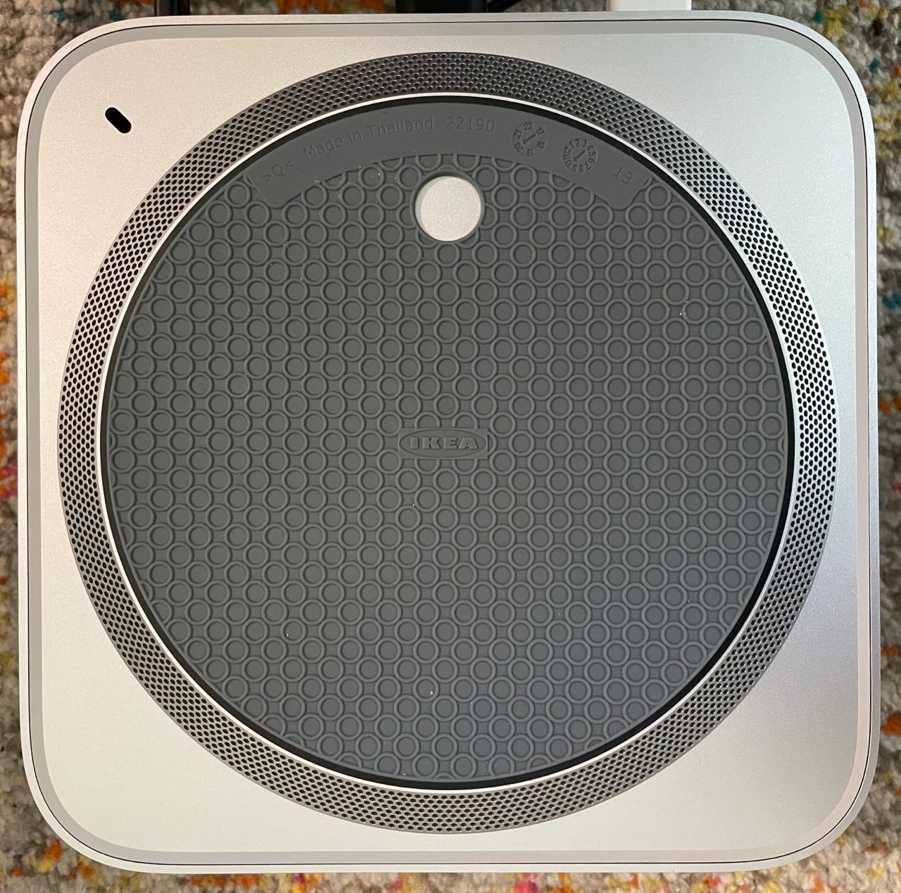 It's a perfect fit under the Mac Studio's base, it will keep it stationary on a slick desk without any adhesive, and it's very thin so it's doesn't affect the Studio's height much at all. I say it's an unhelpful tip because the product has apparently been discontinued, it's completely disappeared from the internet and IKEA Customer Service can't even find it in their system.