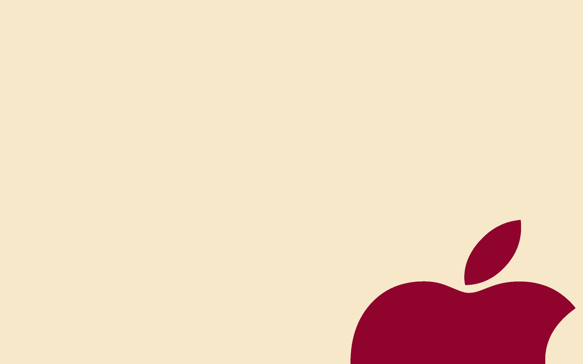 Guys n gals! I've been searching Google images for the last week for a wallpaper I had years ago. All I can remember is I think it's beige and has a maroon Apple poking up from the bottom right hand corner. Some of the Apple isnt shown as it's only sort of half an Apple. When I say Apple - I mean the Apple logo that appears when you do option + shift + k(?) I think. Not a 3D apple. I think it was made by Apple, and not a third party but I could be wrong.
