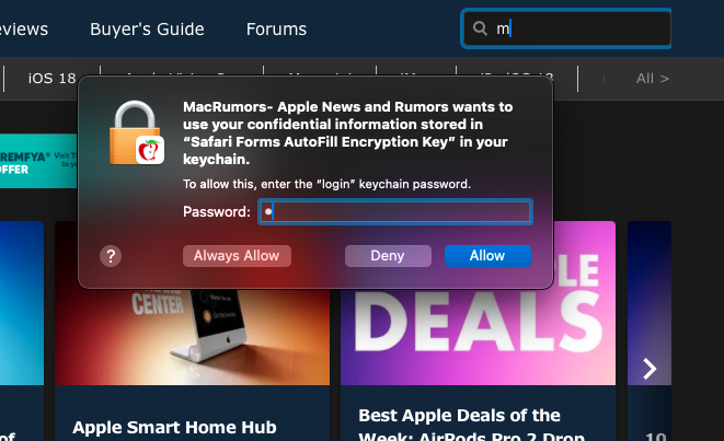 I'm using the MacRumors WebApp on macOS Sequoia, and I'm having this annoying pop-up each time I try to use the search: