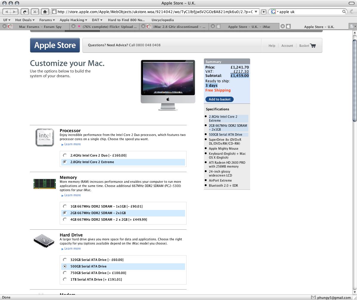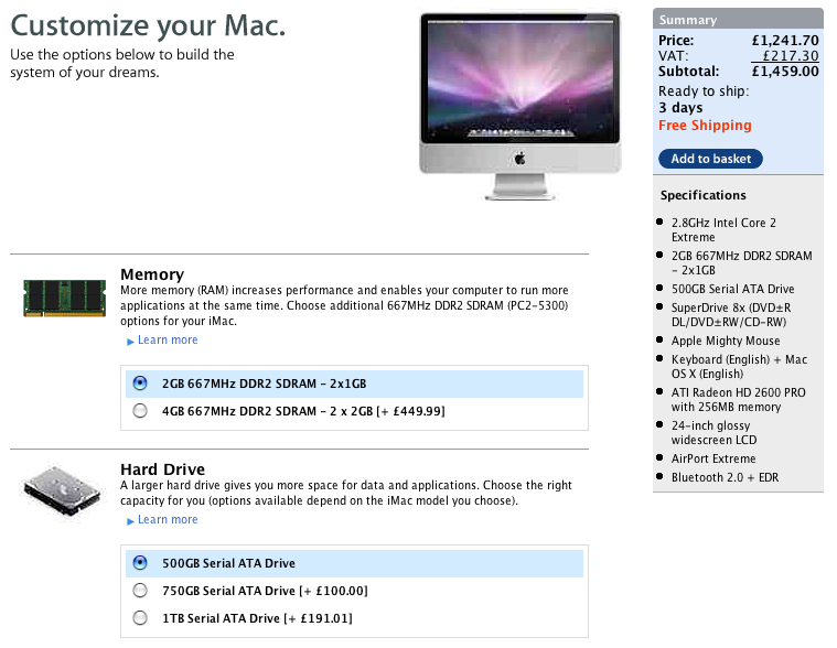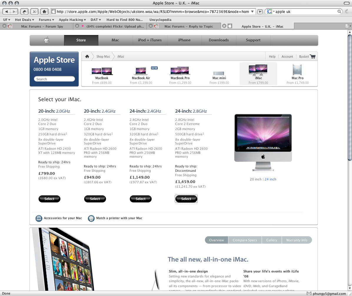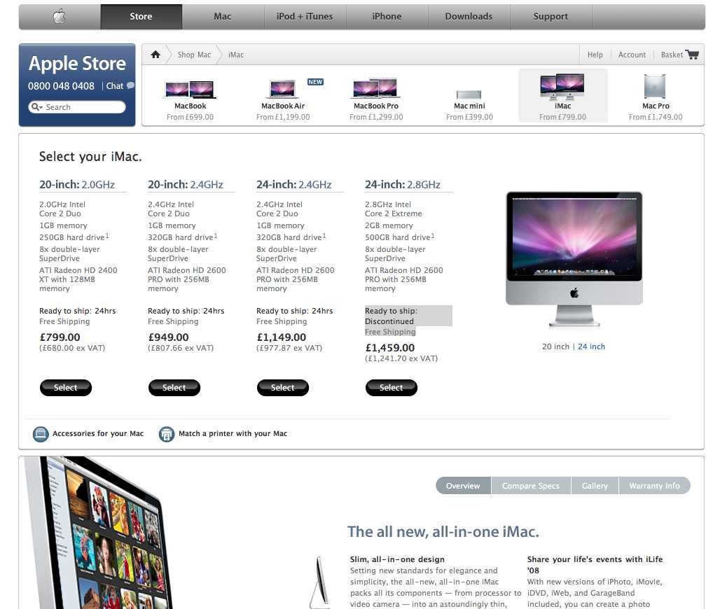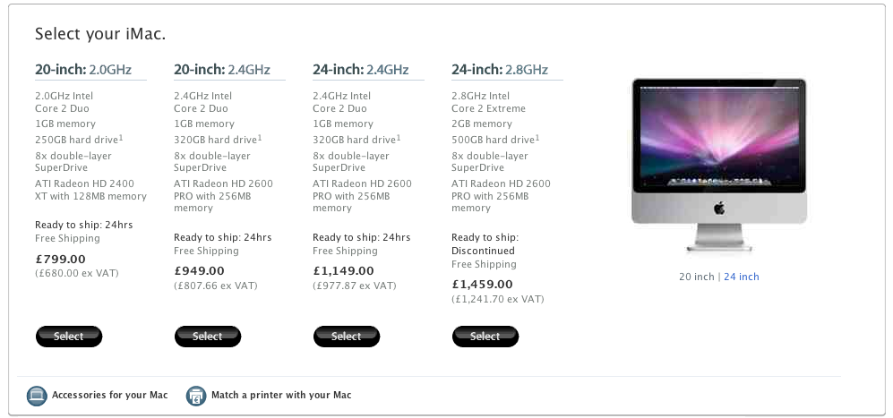 iMac 2.8 GHz 24 inch has been discontinued. Why? I hope it's for something even better, because this looks like it would be a great machine. I went for the cheaper 20 inch with 2.0 GHz but had the money been available I would definitely have gone for the top end machine. Apple, please don't push down the performance of the iMac - it has become a great machine.