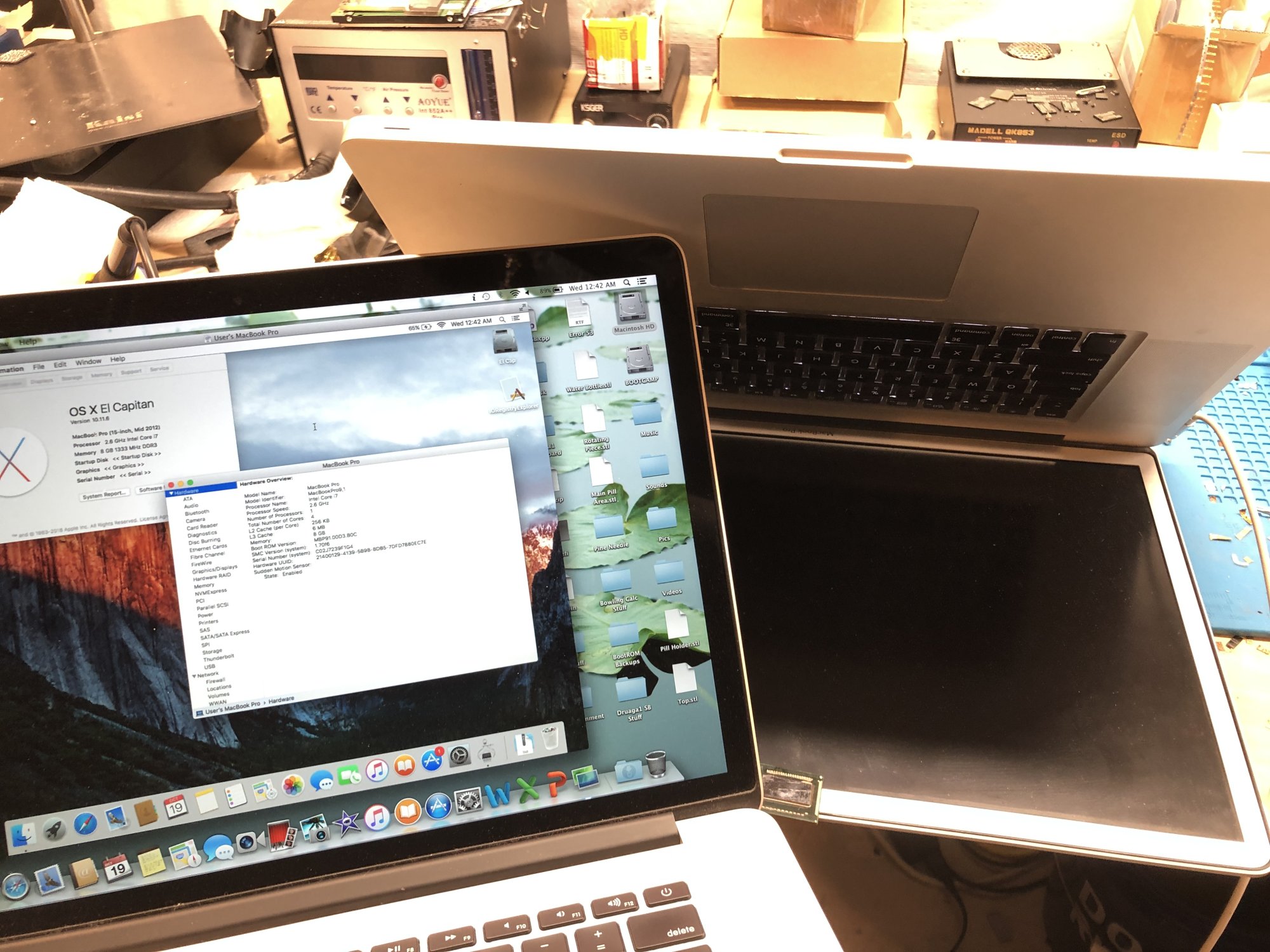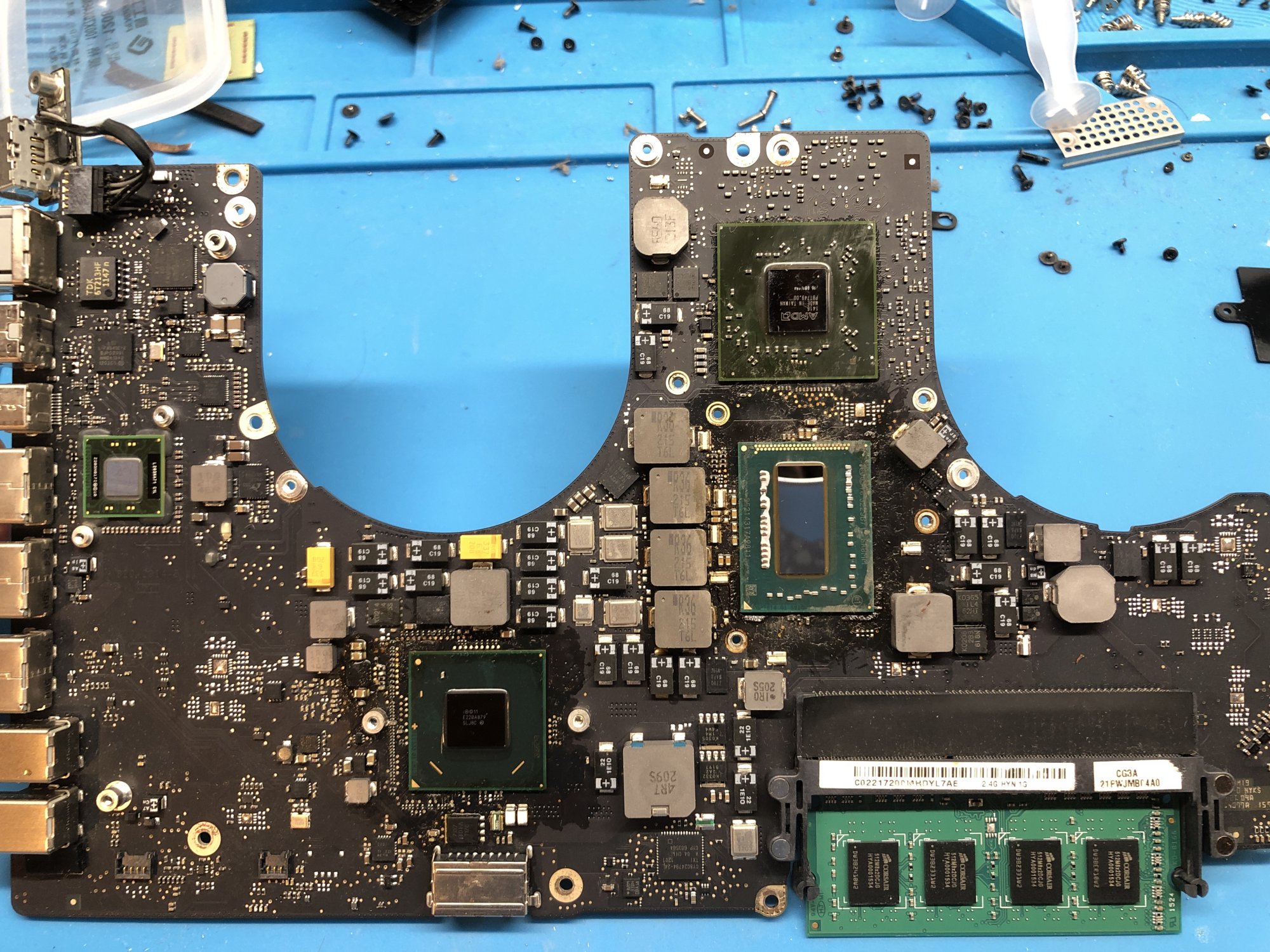 Awesome work!!Although not directly related to the topic of this thread, I figured I'd post about this here to see if anybody had any ideas. Recently, I replaced both the CPU and PCH on a 2011 17" MacBook Pro logic board with those from an Ivy Bridge Mid-2012 15" MacBook Pro, upgrading the PCH from the original HM65 chipset (which does not support Ivy Bridge CPUs) to HM77, and the CPU to a Core i7 3720QM. With that done, utilizing an SPI-ROM dump from a MacBookPro9,1 flashed onto the 2011 board, I actually got it to boot, but it has many issues, mainly due to the fact that Apple repurposed many of the GPIO pins of the PCH on the 2012 MBPs. As such, running an unmodified BootROM for a Mid-2012 MBP does not work well (as it, of course, assumes the GPIO pins are connected as they are on a 2012 MBP logic board). Along with other things, the integrated video did not work, so the only way I was able to access the machine and confirm it booted was via Remote Desktop. (The AMD GPU is defective and is fully disabled using DeMux firmware).