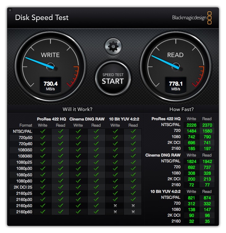 I ran several benchmark tools and all of them came up with 700 to 750 for both, reading and writing.