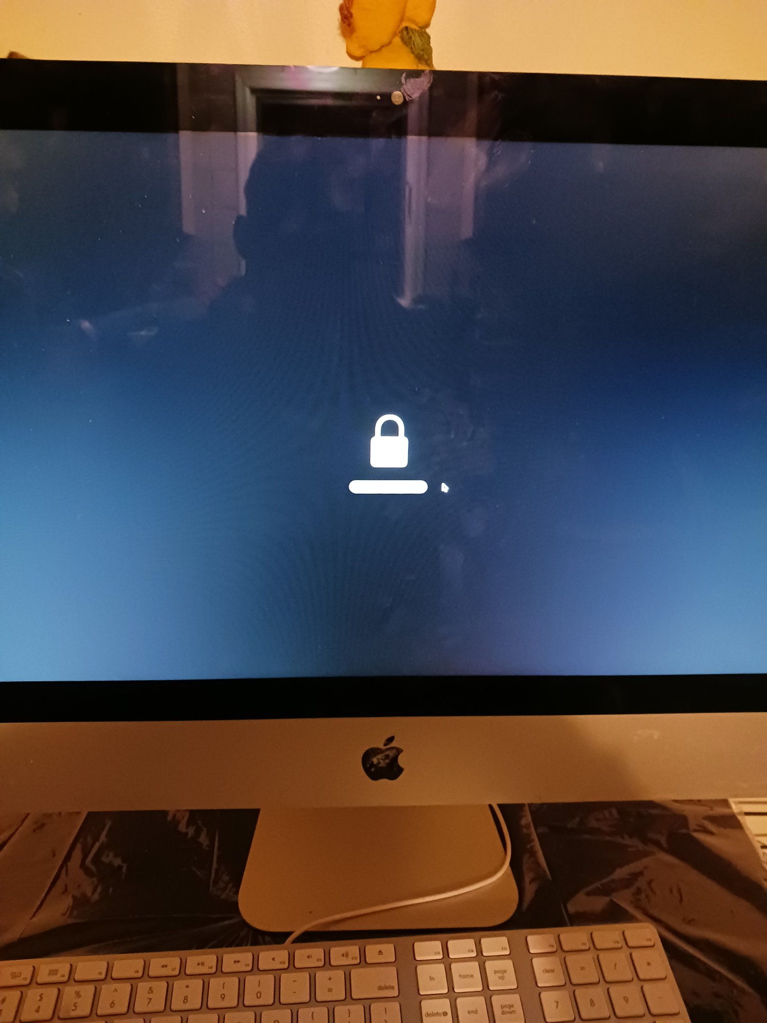 Hello community, i have an imac 2017 duo core 2.7 21 inch. i installed ventura back in November but i really dont like it, AT ALL. Tried to install monterey but it says i cant install older operating system on a newer system, so im trying to use a usb installer to go back to monterey. Everytime i restart with command R it goes to a locked screen(pic attached) i enter my password and it does nothing, i restart holding option and i get the same result..