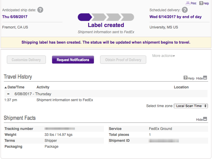 Interesting. Maybe Apple is doing quality checks onsite for the first couple of units? Fremont is minutes away from Apple's HQ.And it shipped! I'm including the shipping info below as a data point for you to compare and contrast with your orders. A few interesting tidbits: