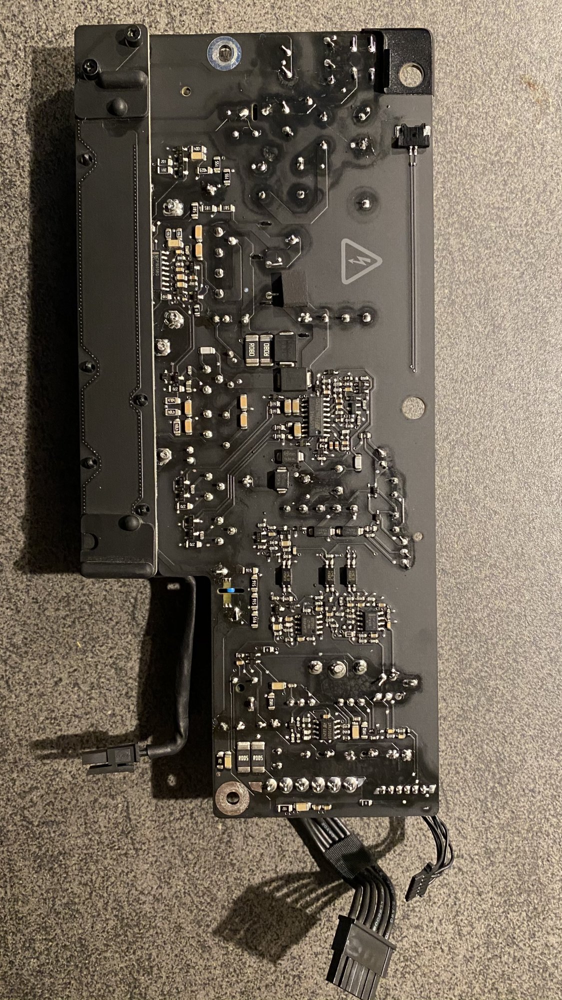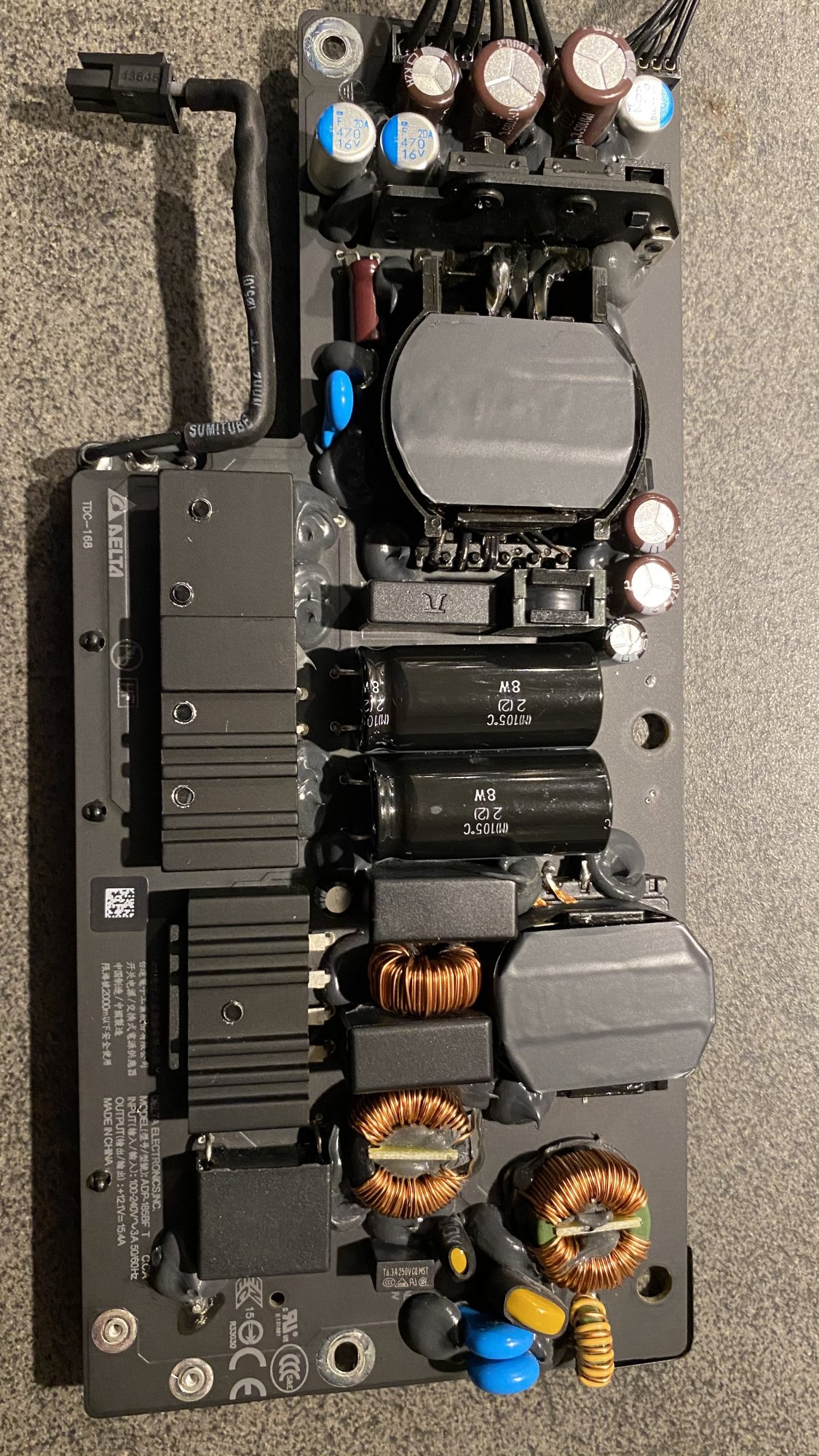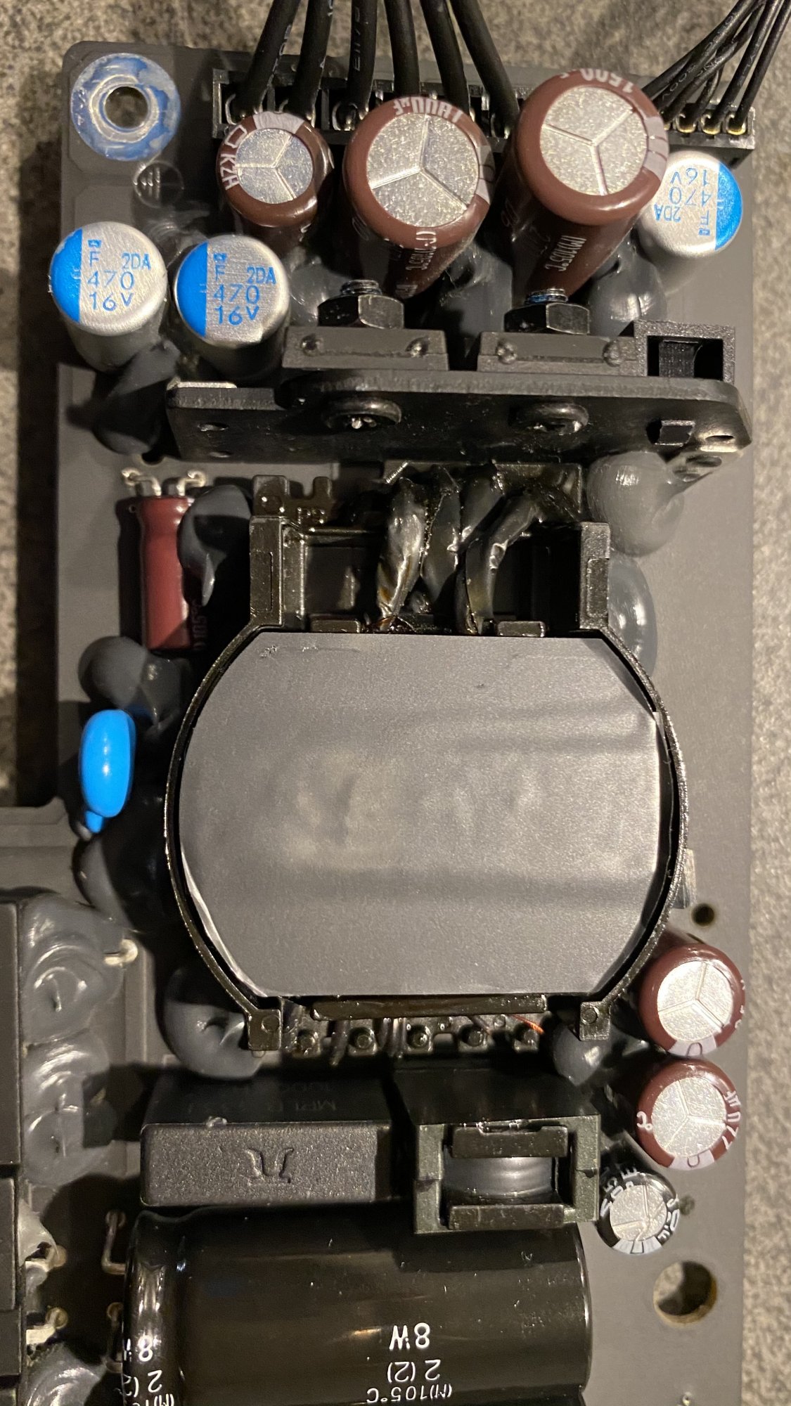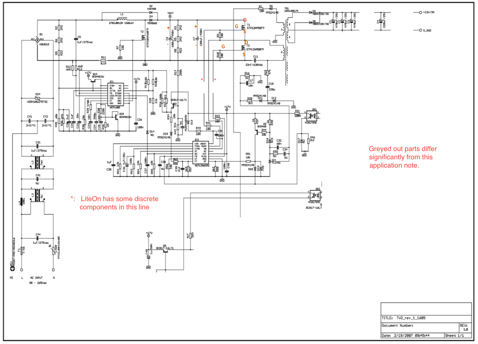 Your AC portion is nearly identical with mine, see schematic. You can identify the large 450V capacitors C6 and C7, indicated with + and -.