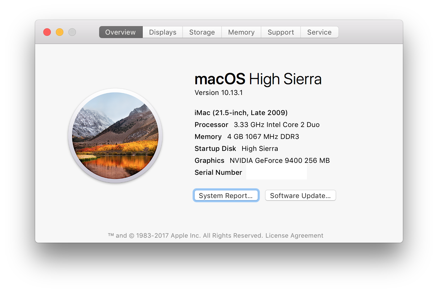 - macOS High Sierra - Still free, even though this iMac would have originally shipped with Snow Leopard.