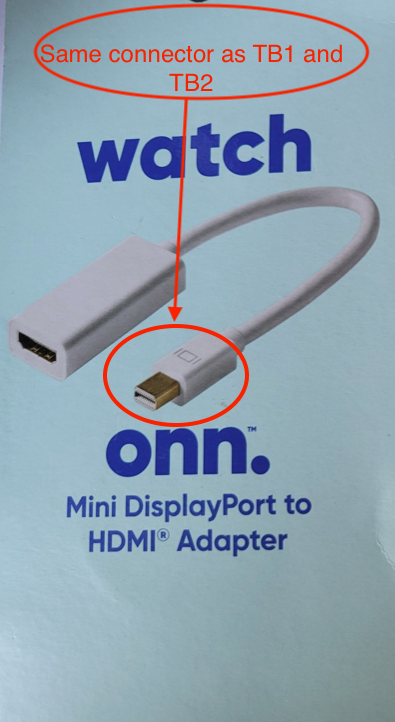 The connector on TB1 is the same connector that is on TB2, It is also the same connector on Mini DisplayPort.