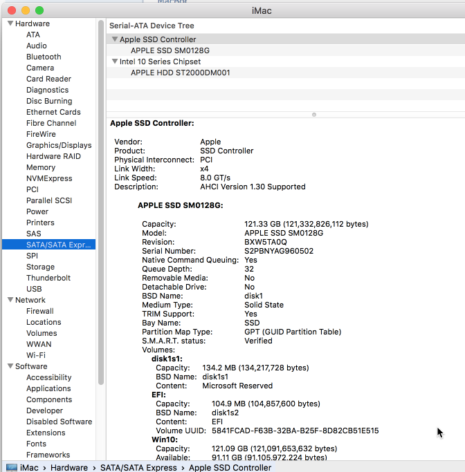 When I check the info about this iMac (About This Mac --> System Report --> Storage from the navigation), I see that there's a Samsung SSD indeed, but the protocol is SATA, not PCI. In my Macbook Pro retina I see the protocol is PCI. I have attached an image. Anyone with SSD (flash) storage can please check what they have there? Is this SATA in any way affecting the speed (such as booting up, etc) of my iMac? Thanks