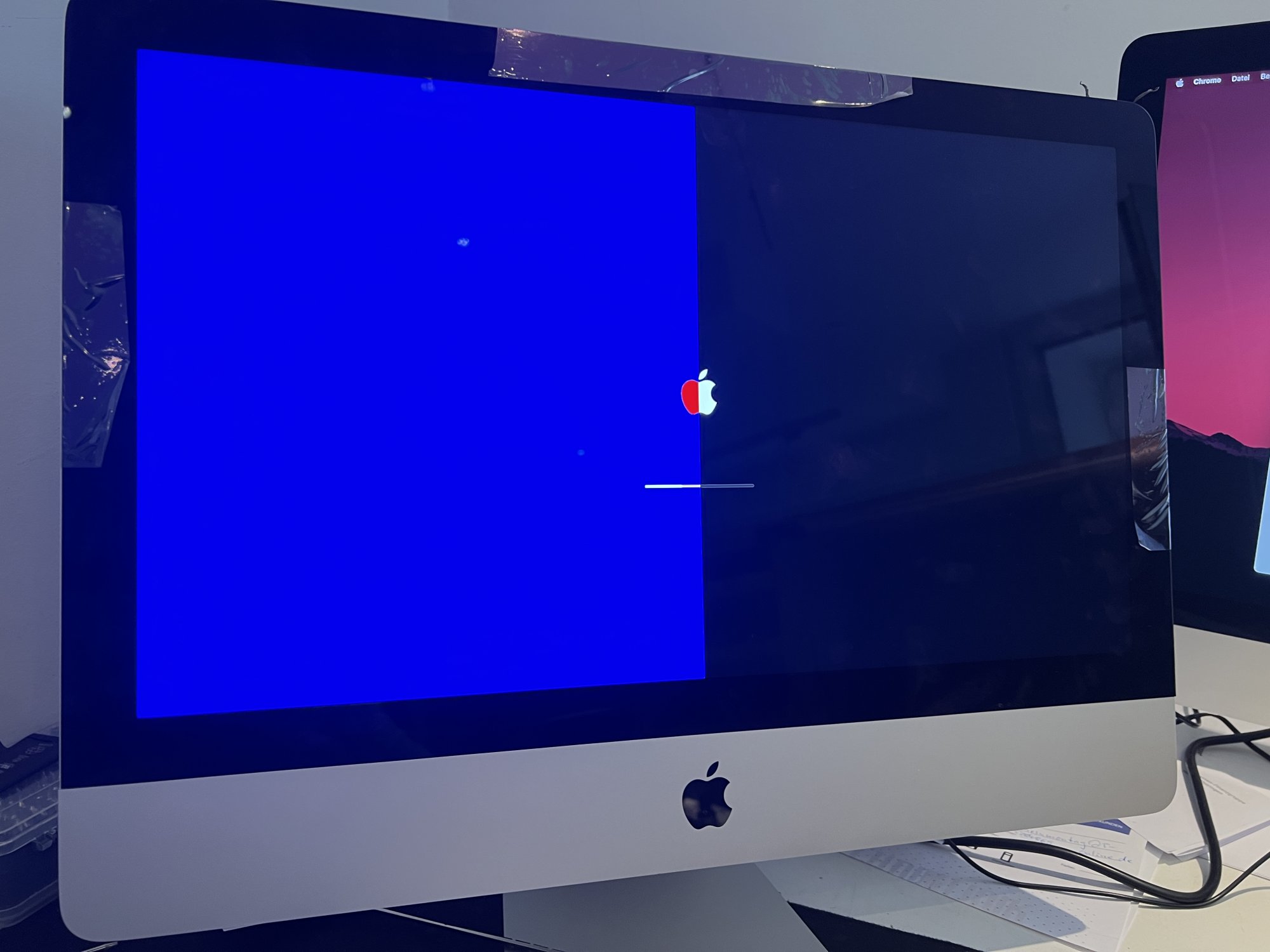 Hello, I have a problem with an iMac 2017 21 inch , the imac stratet very hard after 3 - 4 times try he boots through otherwise the hangs at the loading bar (****-----------) (1/4) and then comes a black screen but the iMac is still on her hear the fan and and hard drive running. If he is then on and I play 4K videos 10 min has the GPU 58 *C. Where is the problem here?