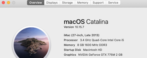 I have an old iMac 27 inch Late 2013 that has been a good workhorse for years.