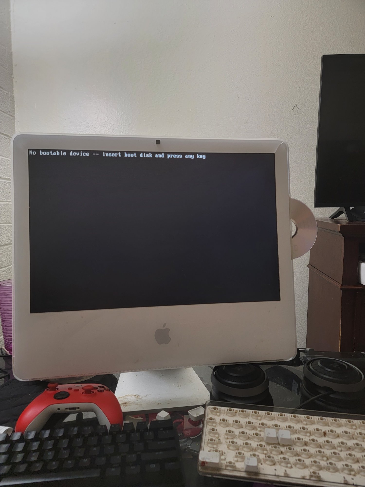 So, I installed 10.9 on my iMac 5,1 and it was working fine. Tried Bootcamp, and now I think it's trying to load into windows which hasn't been installed yet. Superdrive is cooked, won't read DVDs or CDs, and the 5,1 won't boot from USB. (I've tried basically every key combo I could think of, guys.)