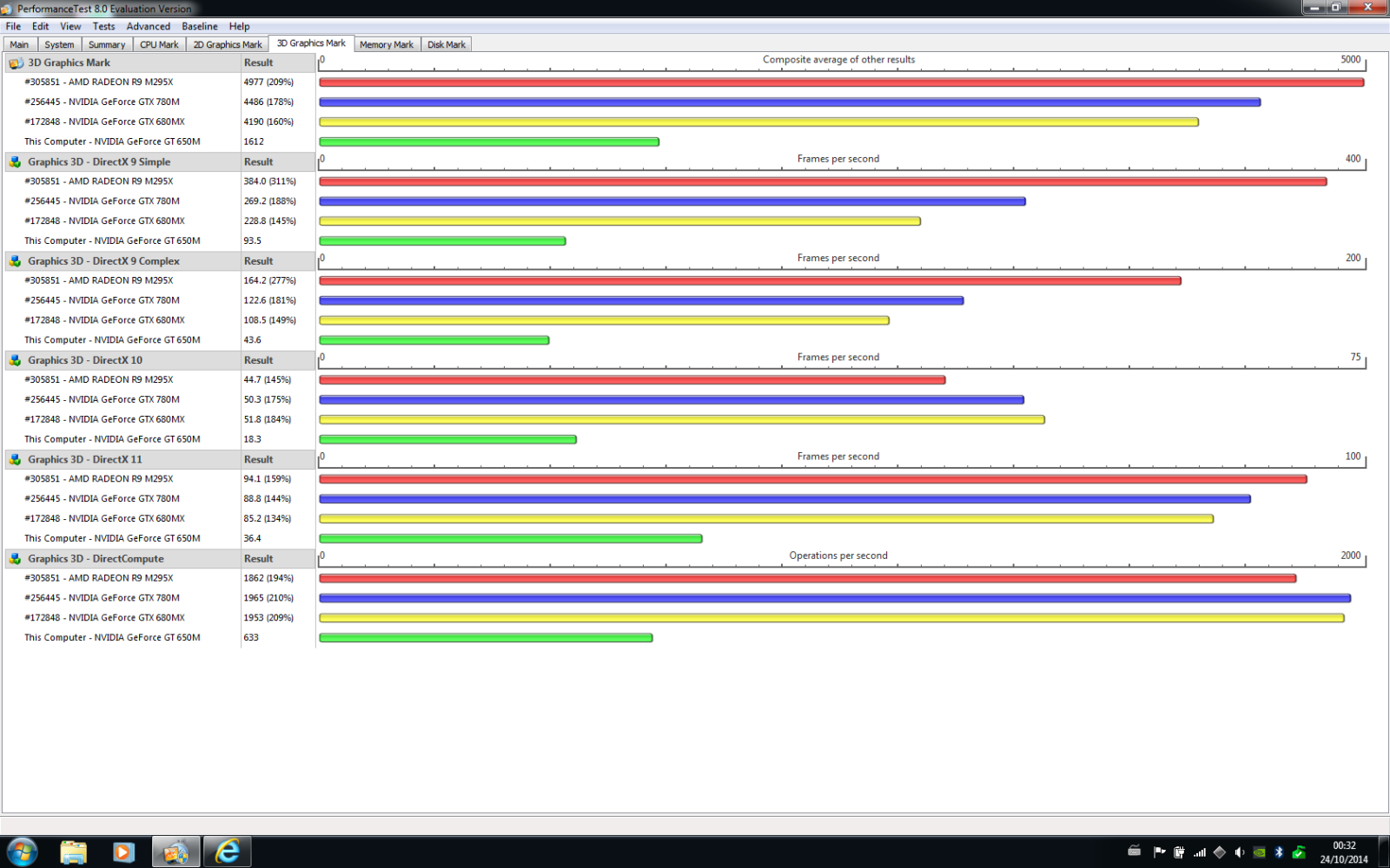 The M295X was running Windows 8.1. The other results are iMacs from the appropriate year running Windows 8. 'This computer' is my laptop, a mid-2012 rMBP running Windows 7.