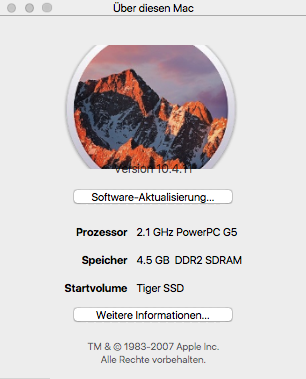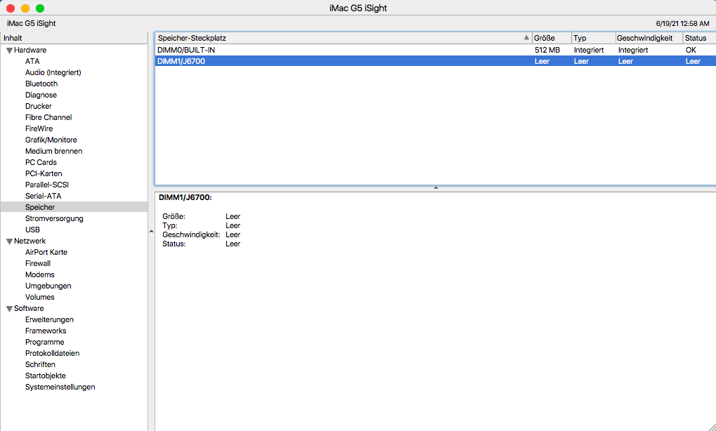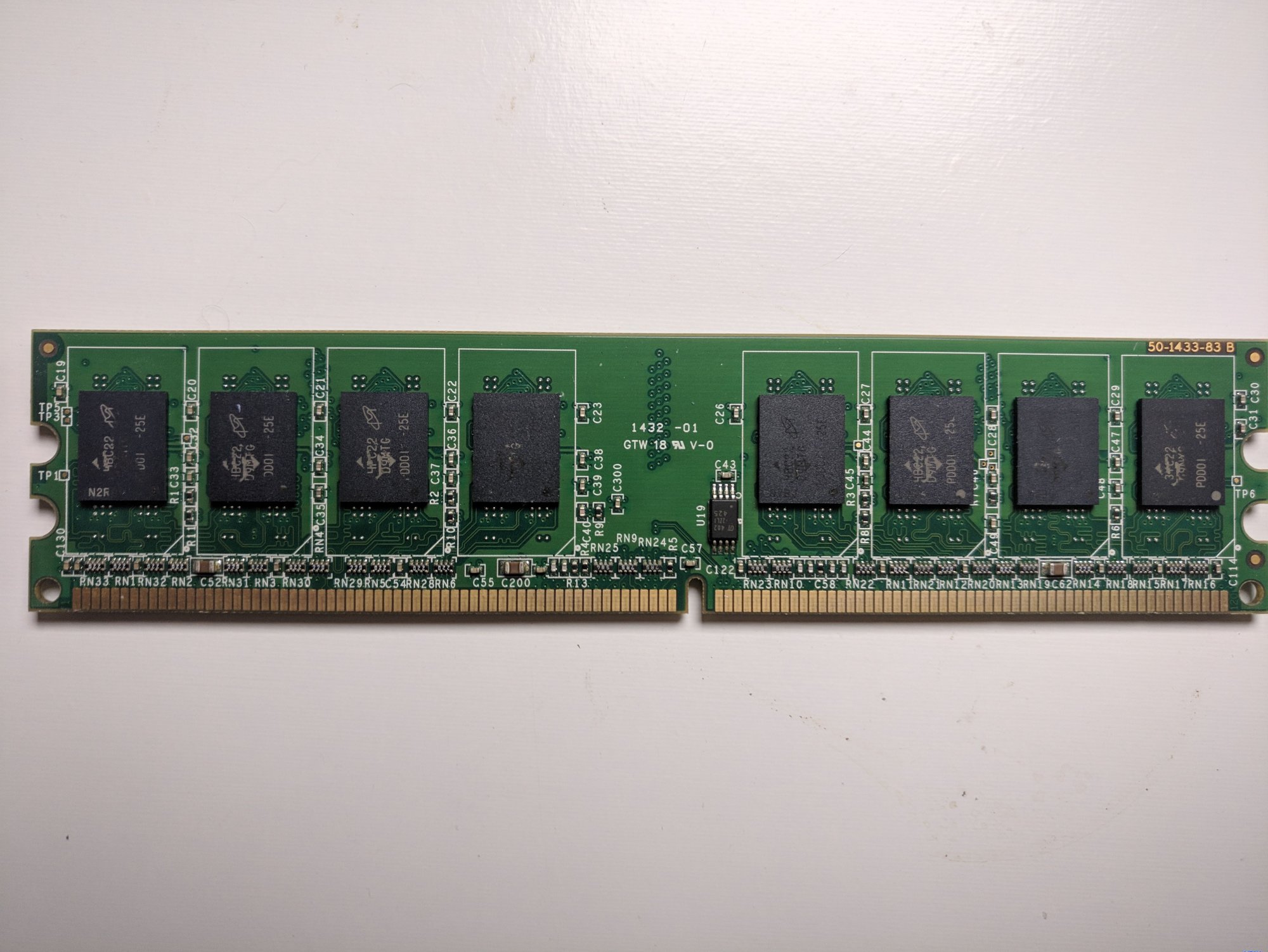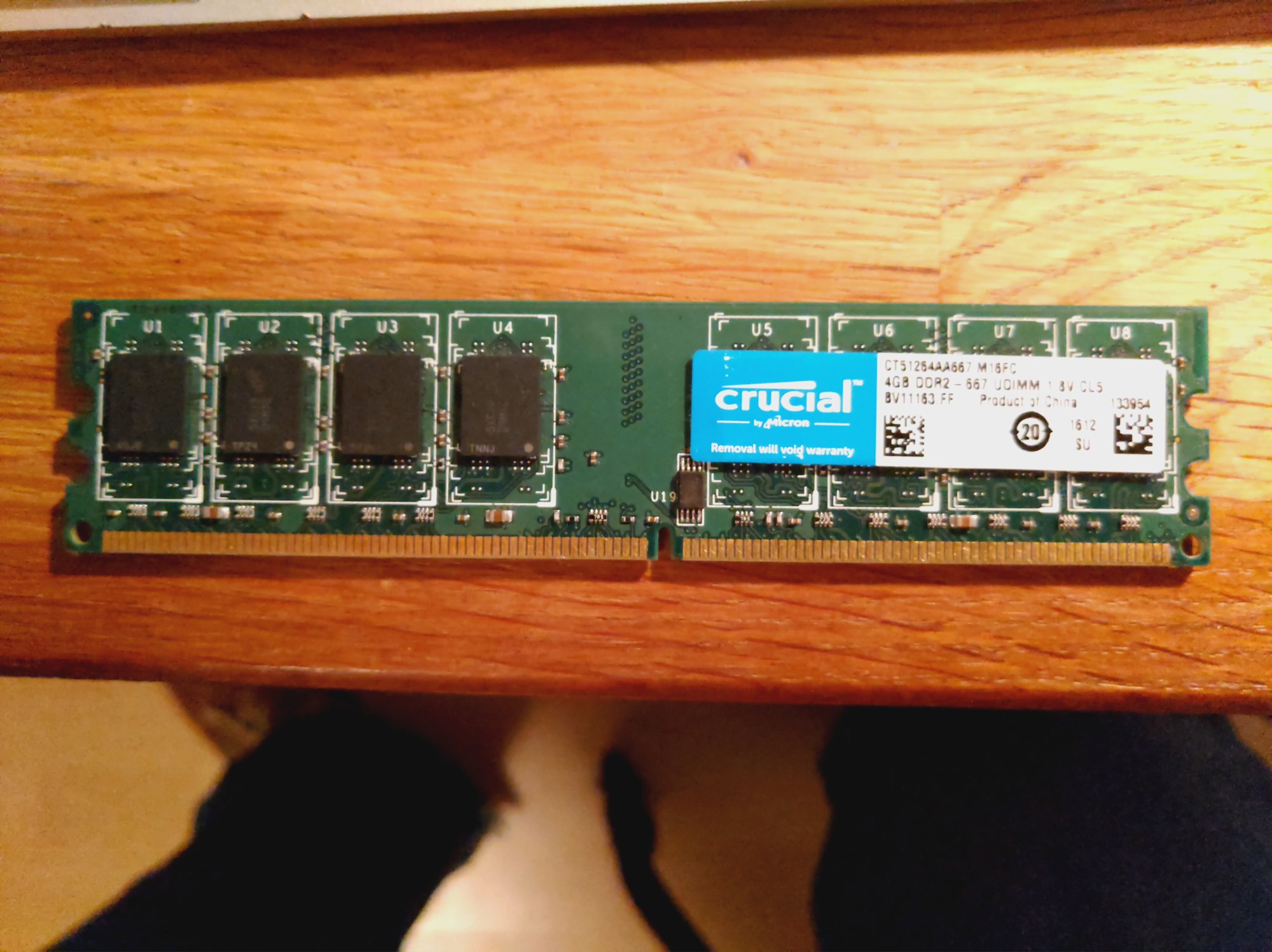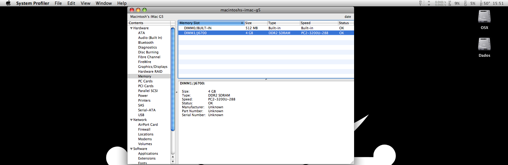 So this iMac apparently has a bit in common with the late 2005 PowerMacs; PCIe based graphics, and DDR2 memory. Since it only had 1.5GB I immediately wanted to upgrade to the "max" of 2.5GB. I grabbed one of my RAM bags, and sifting through it I found multiple 4GB DDR2 sticks. Since the G5 architecture is obviously able to address over 2GB unlike G4s, I decided to put it in and see what happens.