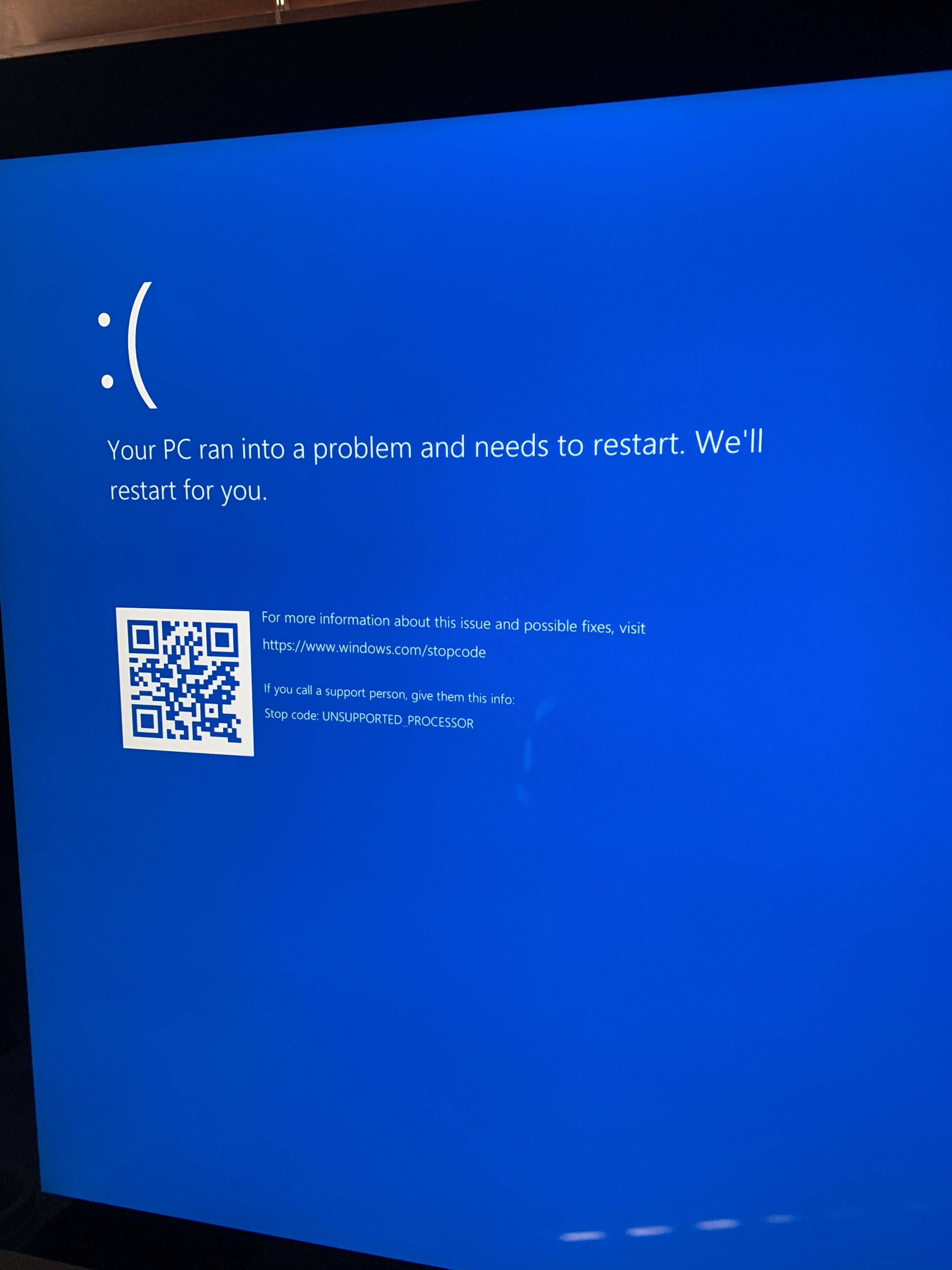Today I have booted the computer to Windows 10 and to my surprised BSOD appeared with message “unsupported processor”.