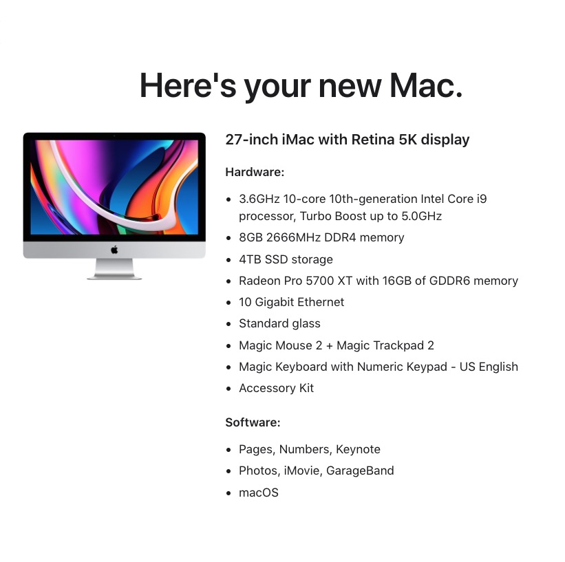 Placed my order today. i9 10 core, 8GB of RAM, 4TB SSD, 5700XT video, 10gig ethernet. I scored 128GB of RAM for $400 from HyperX (Kingston). Estimated ship September 14-21.View attachment 946019View attachment 946021