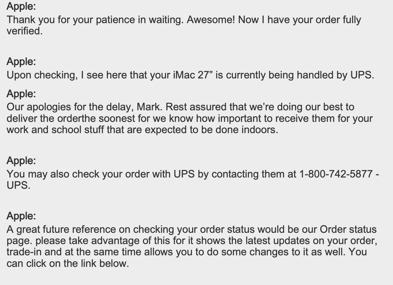btw, I did contact Apple, and did not get much help beyond telling me to contact UPS and check the tracking and status.