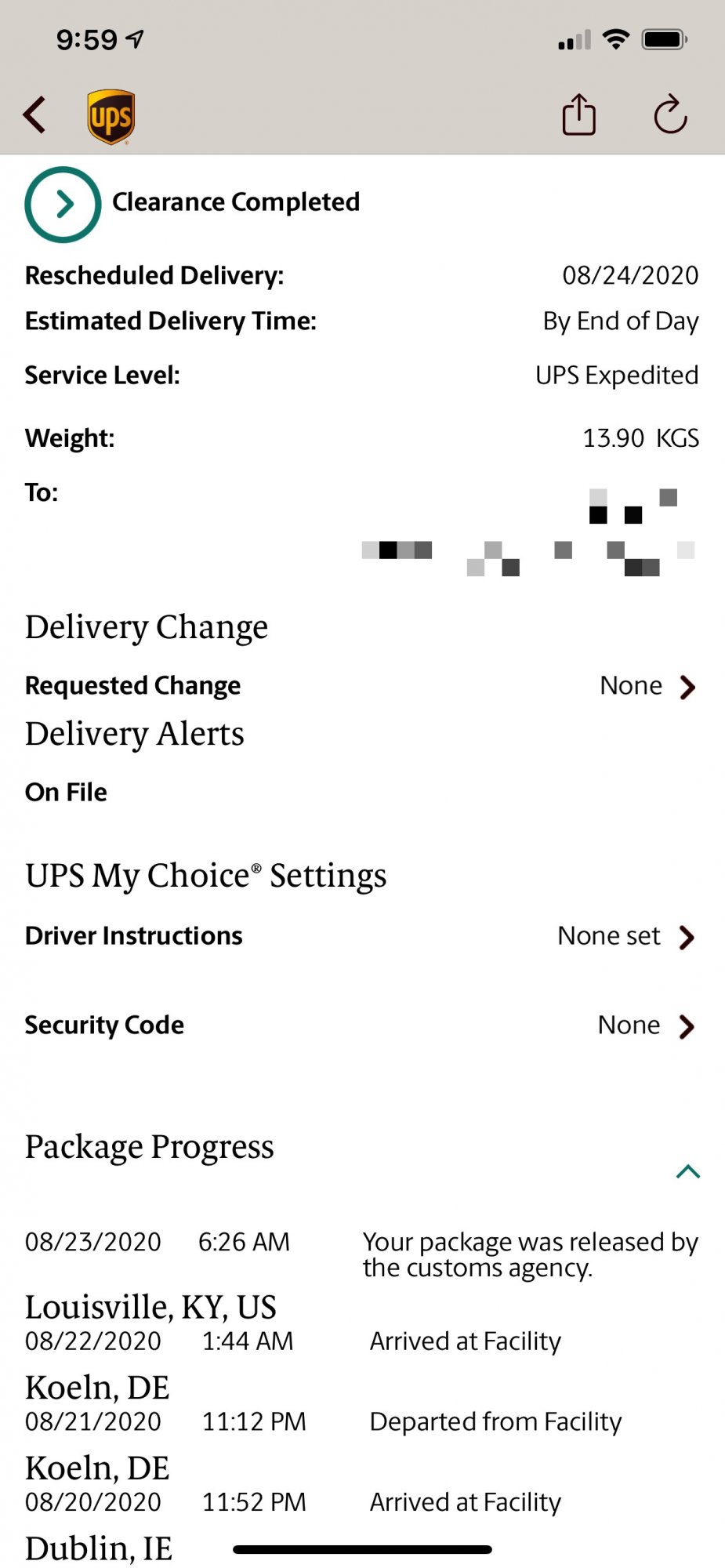 when I check UPS and try to update the delivery date, it has a schedule delivery date of 8/28