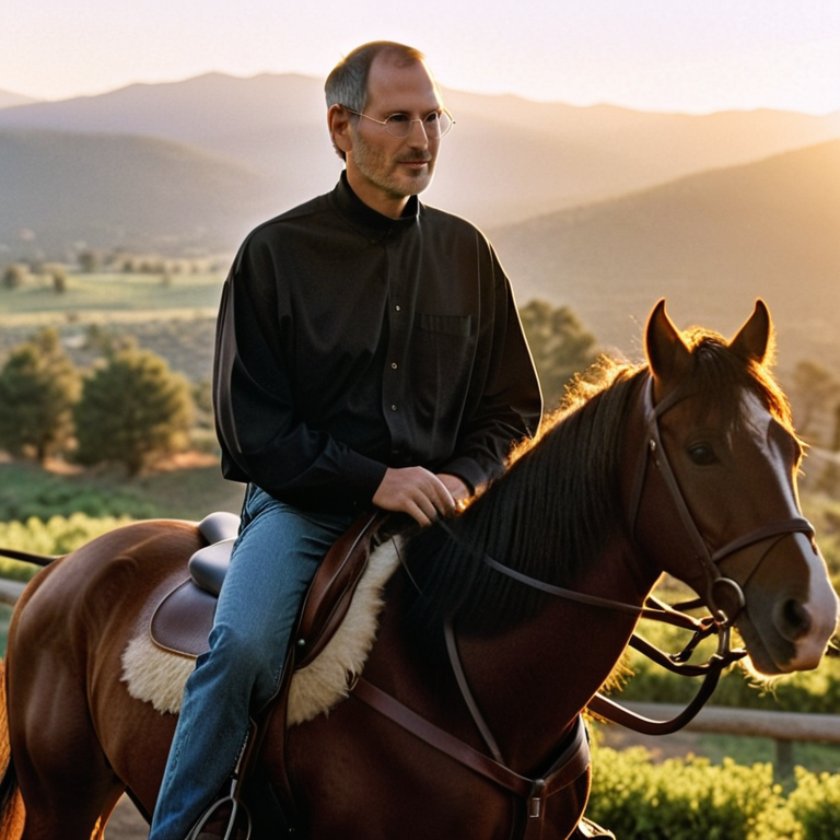 If you want realistic looking image generation, download DiffusionBee, and generate stuff like this ("Steve Jobs riding a horse into the sunset").